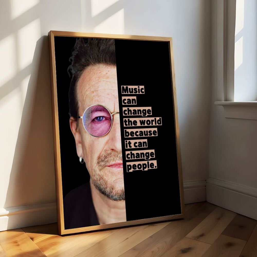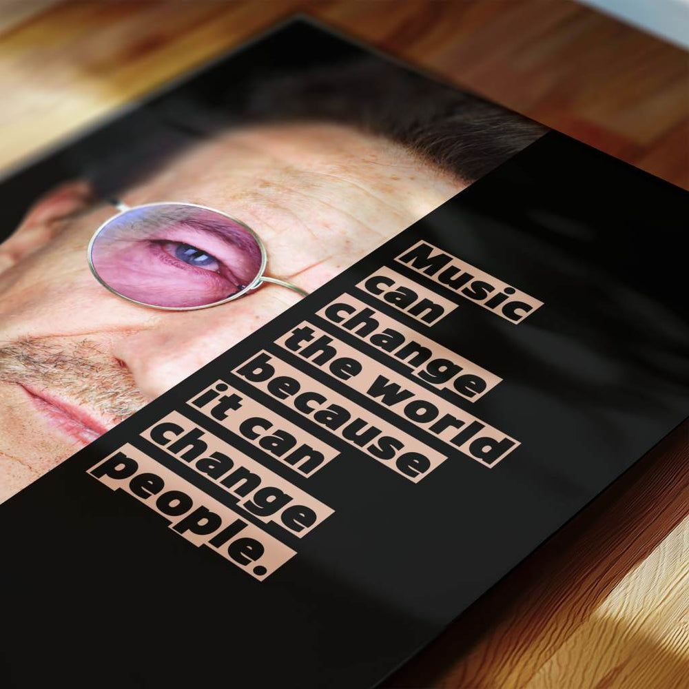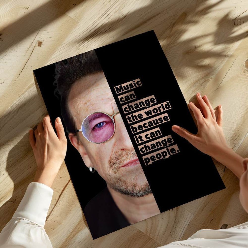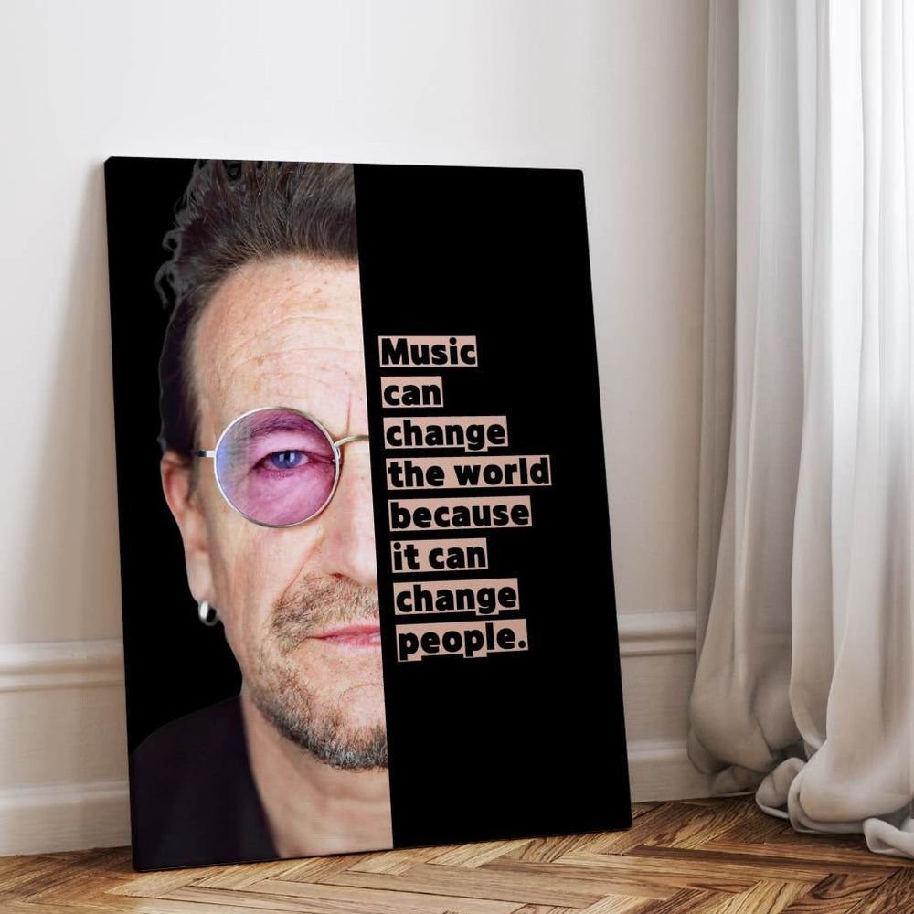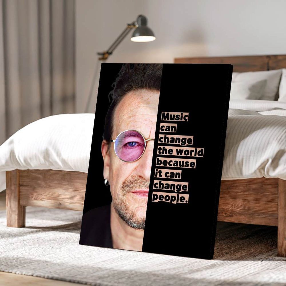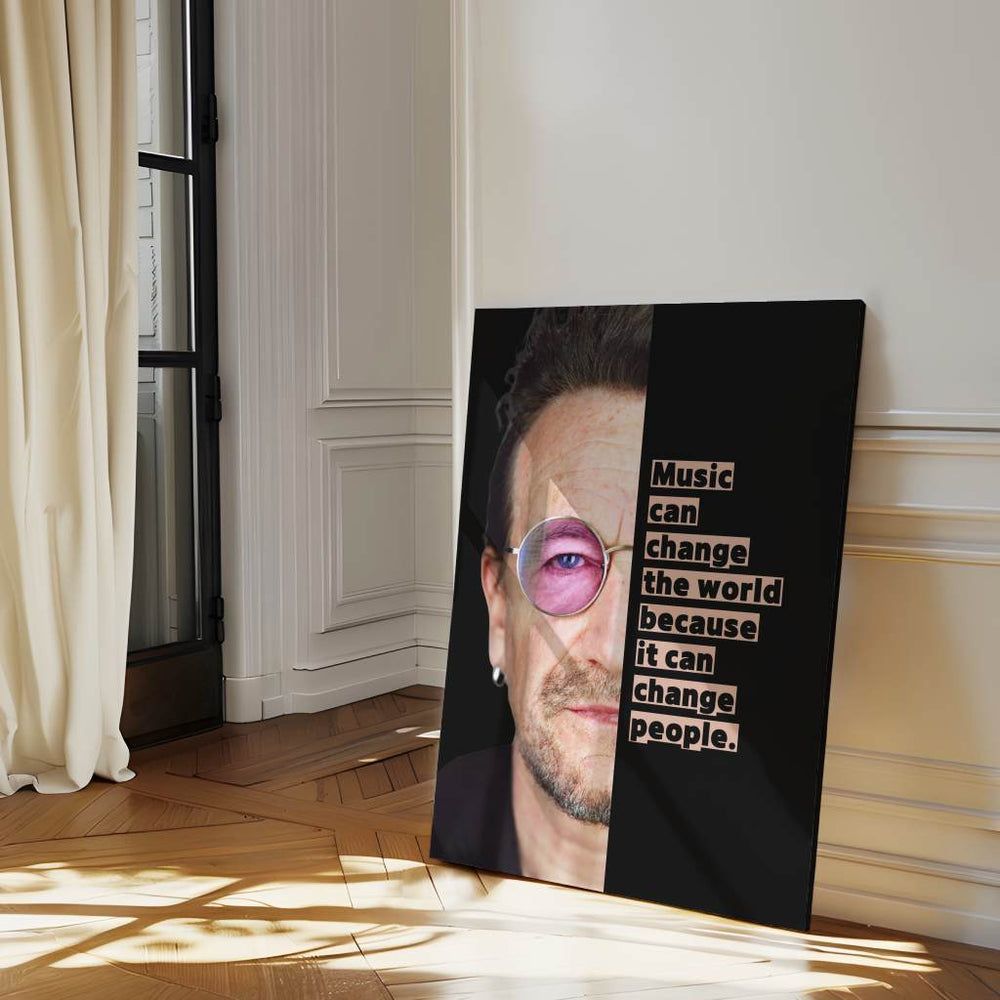 CANVEO Bono / U2 Poster Bild Leinwandbild Wandbild Porträt Spruch Zitat Geschenk Deko