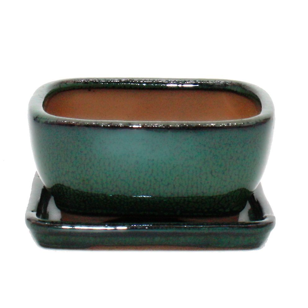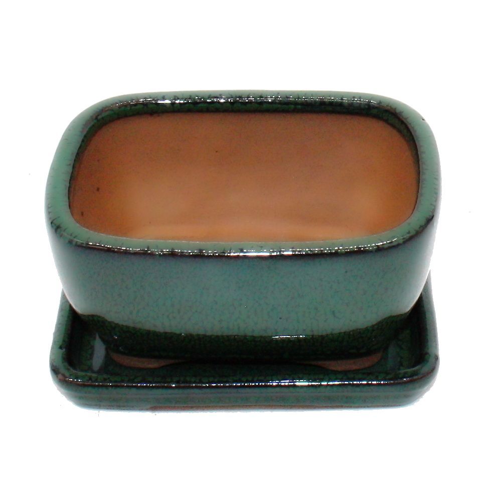 exotenherz Bonsai-Schale mit Unterteller Gr. 1 - Grün - rechteckig - Modell GB5 - L 12cm - B