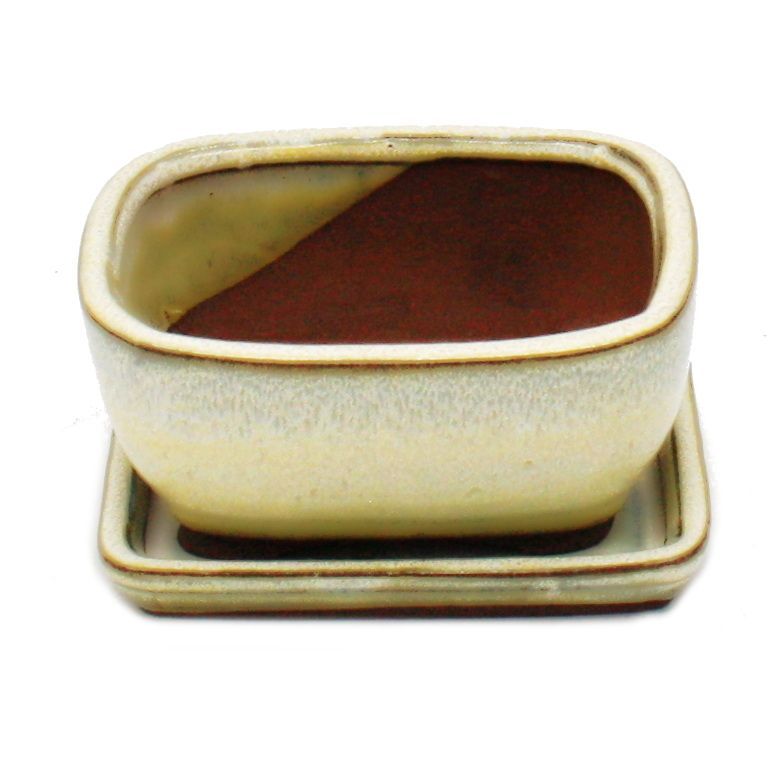 exotenherz Bonsai-Schale mit Unterteller Gr. 1 Hellbeige rechteckig Modell GB5 L 12cm B 9,5cm