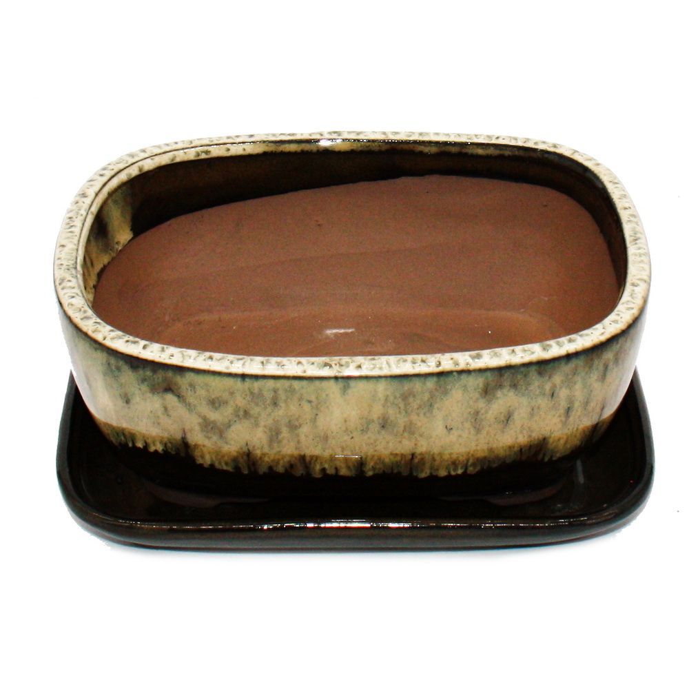 exotenherz Bonsai-Schale mit Unterteller Gr. 3 Braun-Beige rechteckig Modell GB5 L 21,5cm B