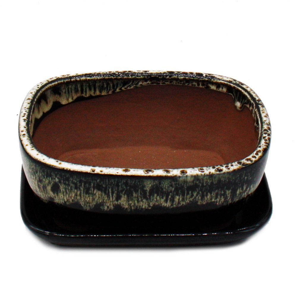 exotenherz Bonsai-Schale mit Unterteller Gr. 3 Schwarz-Weiss rechteckig Modell GB5 L 21,5cm
