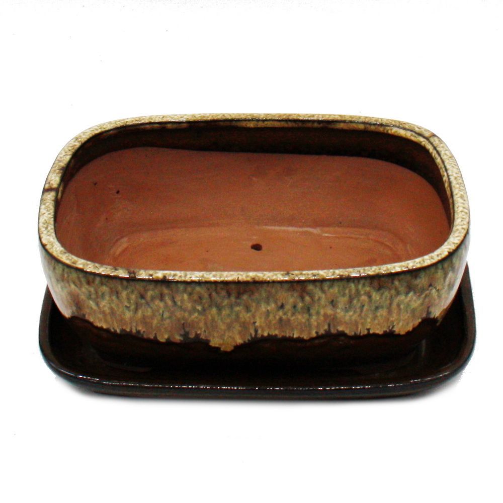 exotenherz Bonsai-Schale mit Unterteller Gr. 4 Braun-Beige rechteckig Modell GB5 L 26cm B