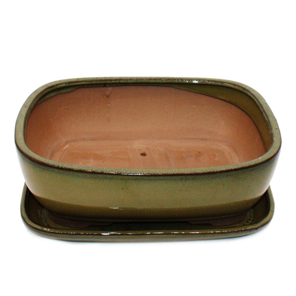 exotenherz Bonsai-Schale mit Unterteller Gr. 5 Oliv-Braun rechteckig Modell GB5 L 31cm B