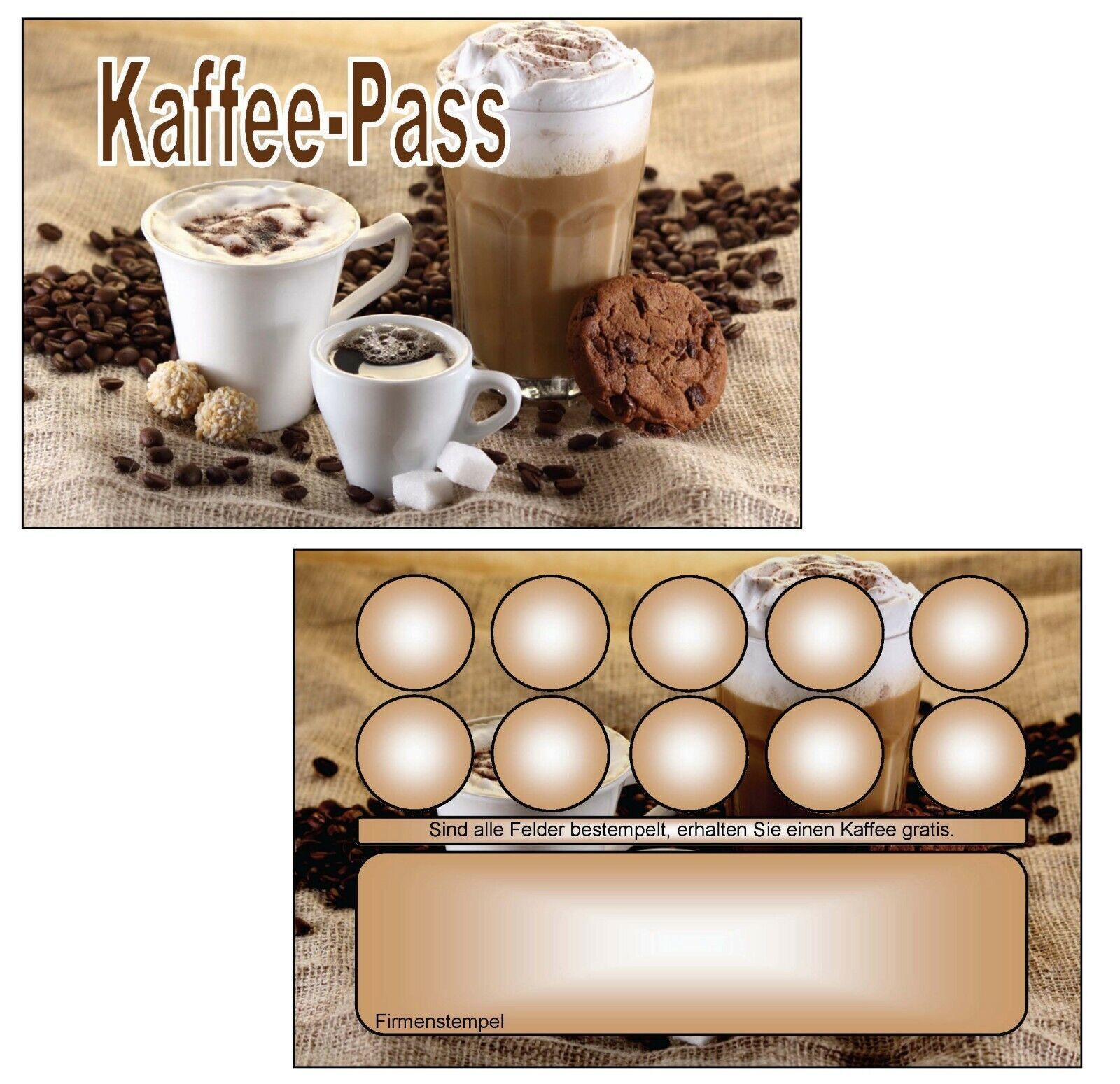 • Bonuskarten Stempel Treuekarten Rabattkarte Kaffeepass Café Backshop Bäckerei Kaffee