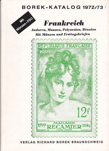 Borek Briefmarken- Katalog Frankreich 1972 73 mit Andorra, Monaco, Polynesien, Réunion Mit Münzen und Ersttagsbriefen Vergilbt und mit Markierungen, sonst guter Zustand. Versandpauschale in Deutschland 3,- € oder 6,-€ versichert. Abholung kostenlos. Versandkosten beinhalten: Verpack