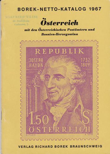 Borek Briefmarken- Katalog Österreich 1967 -LO
