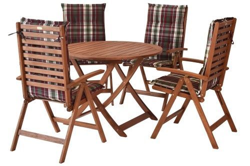Borkum Gartenmöbel Set 9tlg., 4 Sessel, 4 Auflagen, Klapptisch Ø 100 cm, Eukalyptus