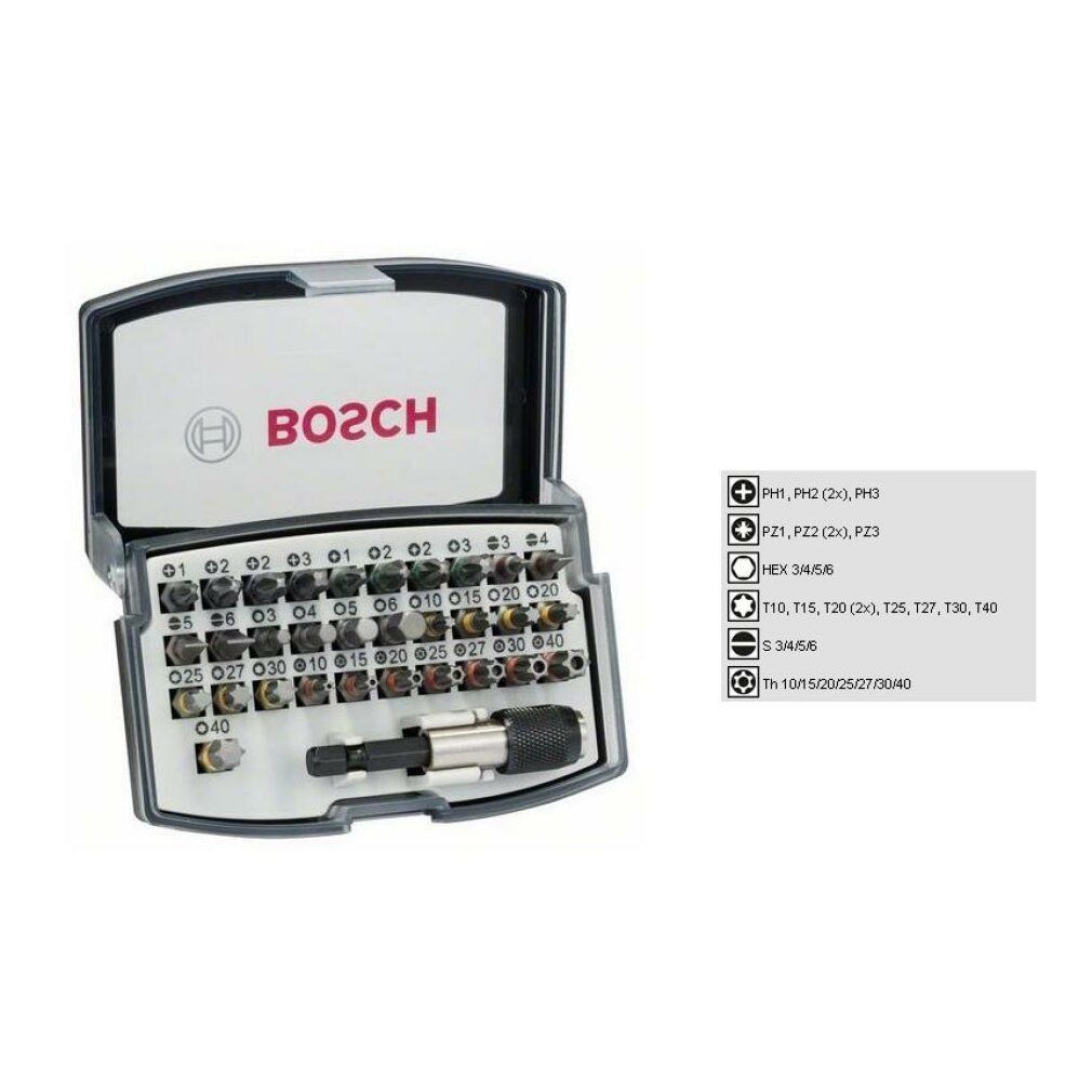 1 4 Schraubendreher-Bit-Satz 32-teilig (2607017319).32-teiliger Schraubendreher-Bit-Satz mit Universal-Schnellwechselfutter.Satzabmessungen [mm] 107,0 x 68,0 x 45,0.Inhalt des Sets:PH1, PH2 (2x), PH3 PH1, PH2 (2x), PH3PZ1, PZ2 (2x), PZ3 PZ1, PZ2 (2x), PZ3HEX 3 4 5 6 HEX 3 4 5 6T10, T15, T20 (2x),T25... Mehr