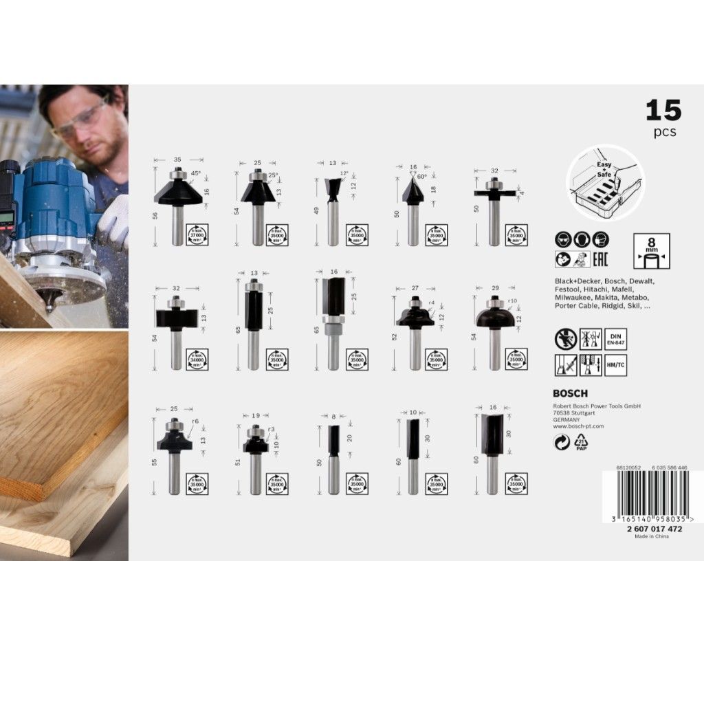 Bosch Fräser-Set 15-teilig Schaft 8mm 2607017472 für Oberfräse