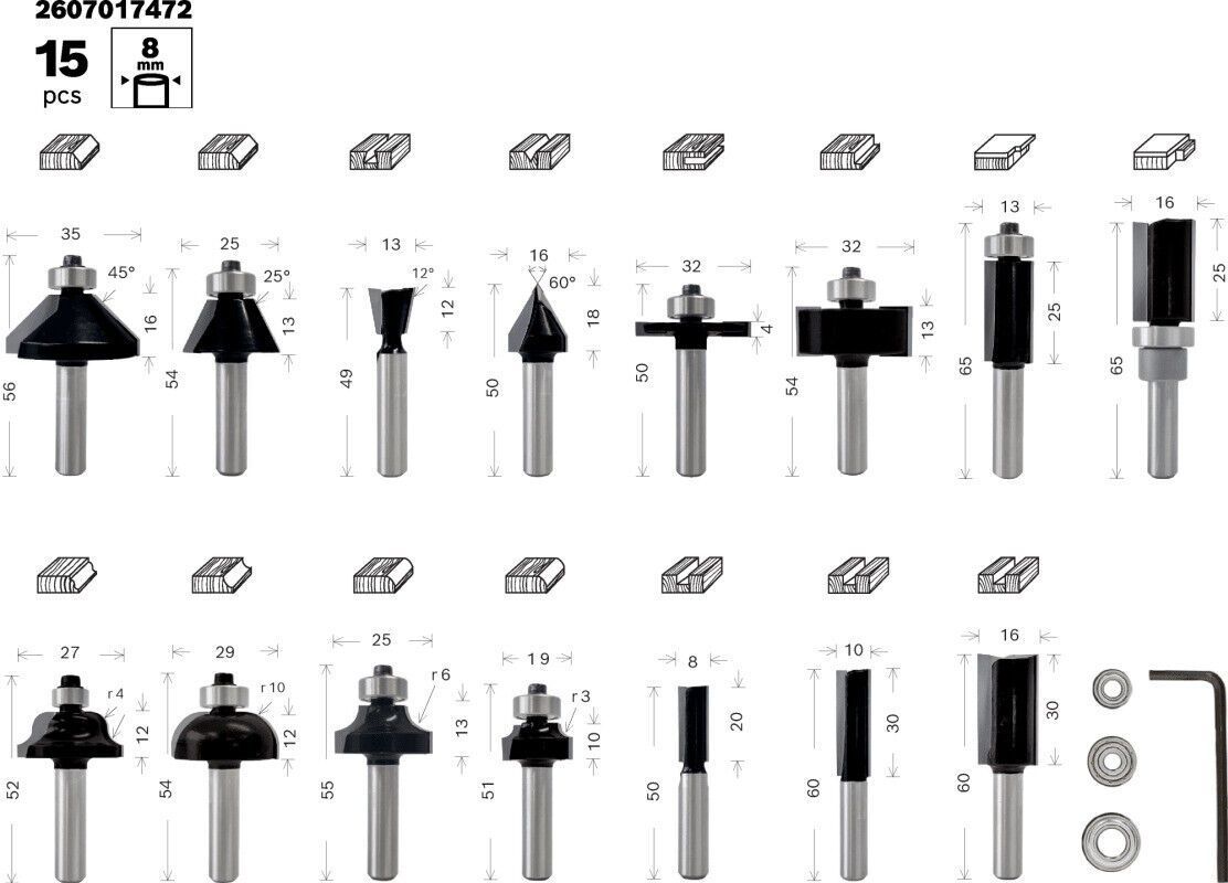 BOSCH Fräsersortiment 15-TLG. 2607017472 8,0 MM Schaftaufnahme