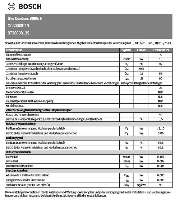 Bosch Bosch Öl Brennwertkessel Olio Condens OC8800iF 19 kW Heizöl EL bodenstehend