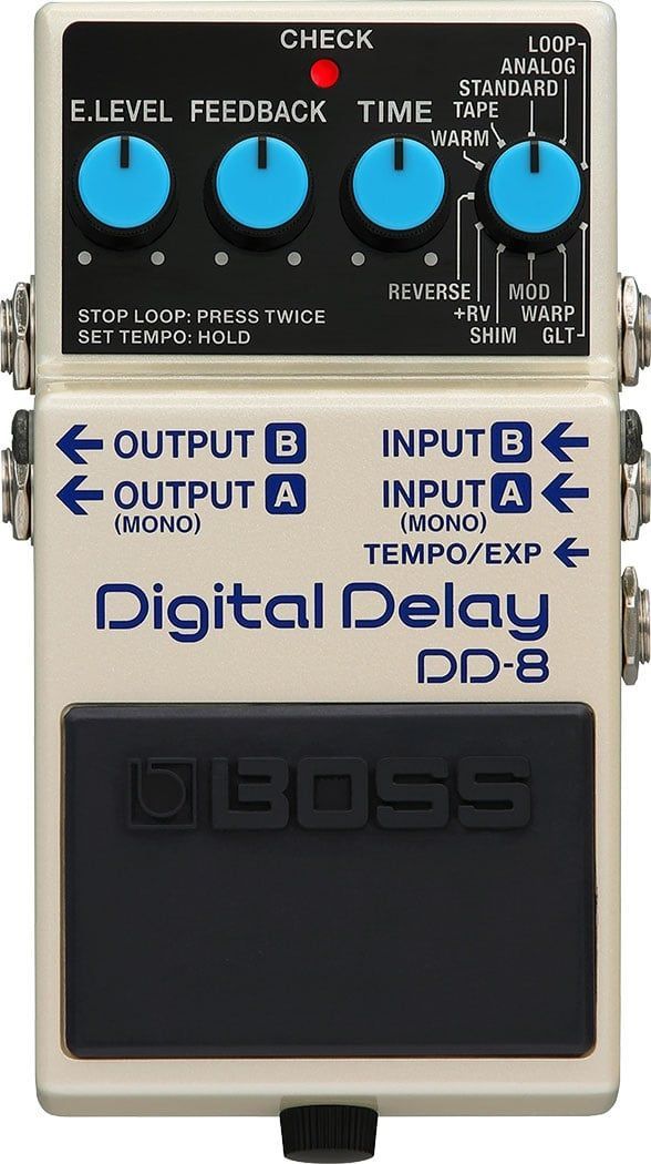 Boss DD-8 Digital Delay 11 vielseitige Modi - vom einfachen Digital-Delay über Vintage-Echoeffekte, Shimmer, Modulation, Looper und mehr Looper mit bis zu 40 Sekunden Aufnahmedauer, unbegrenzten Overdubs und Dreifach-Pedalsteuerung über zwei externe Fußtaster Drei neu entwickelte Delay-Typen: Warm,