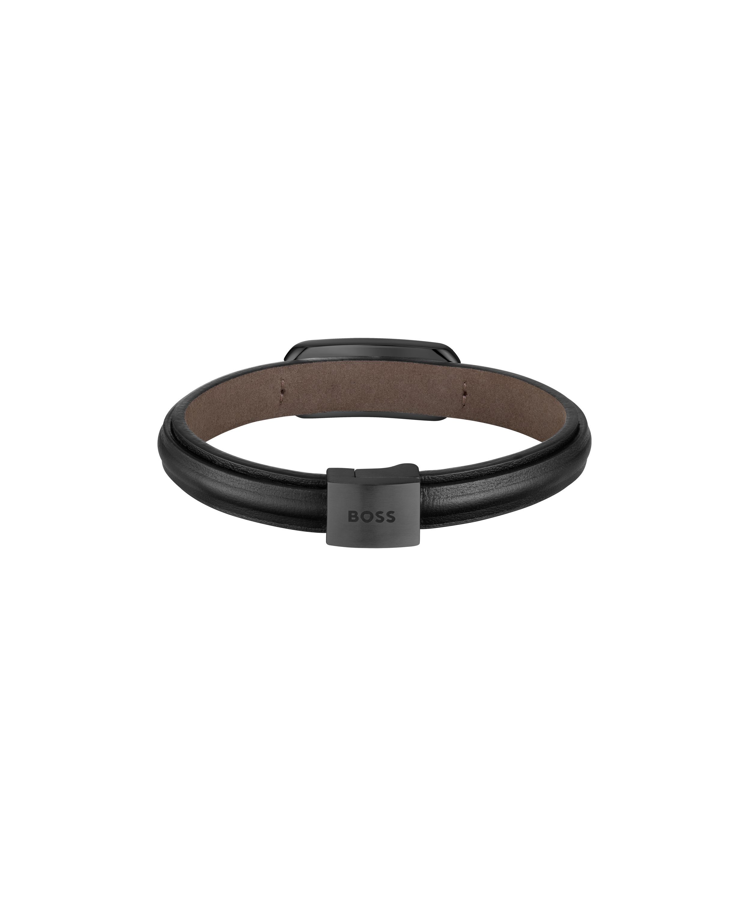 Boss Boss Herren Armband 1580784M Leder, Edelstahl, Schwarz