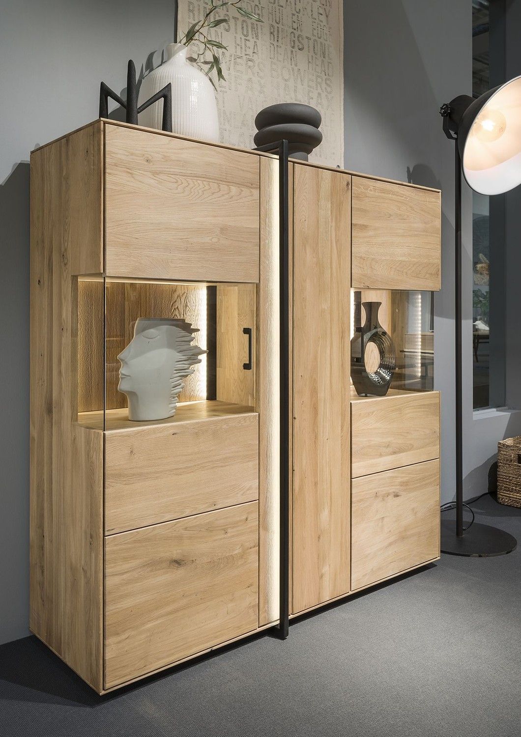 BOSTON Highboard Eiche Geölt Metall Schwarz
