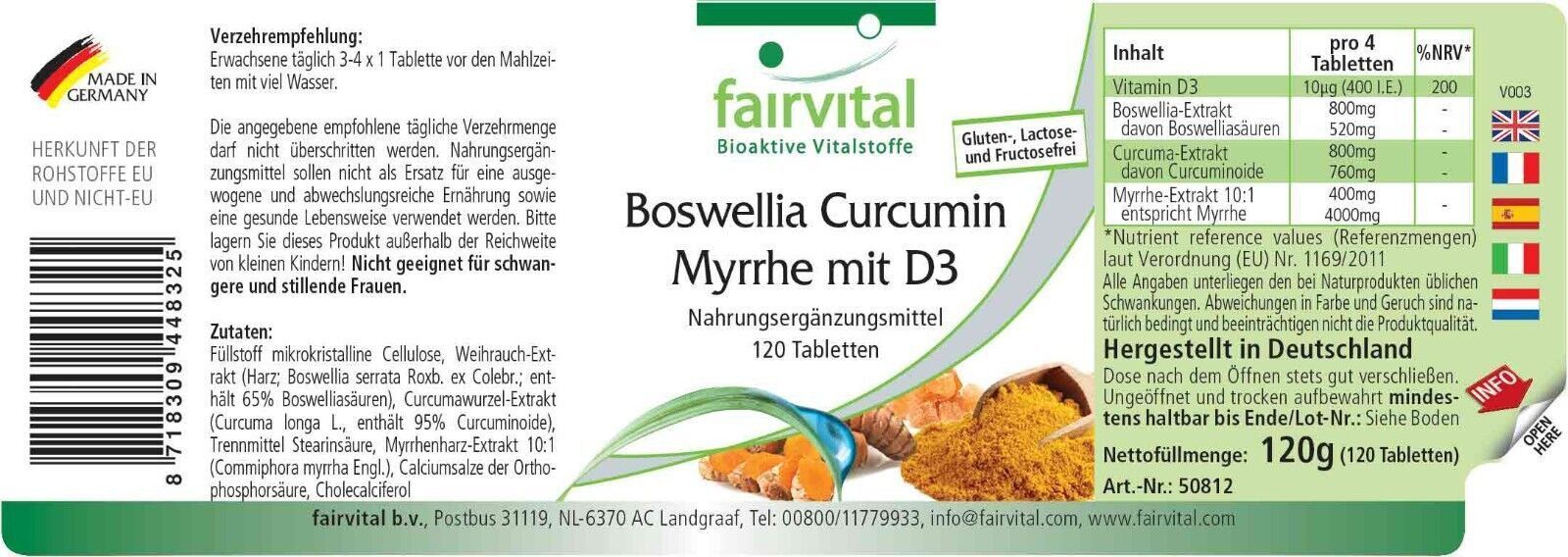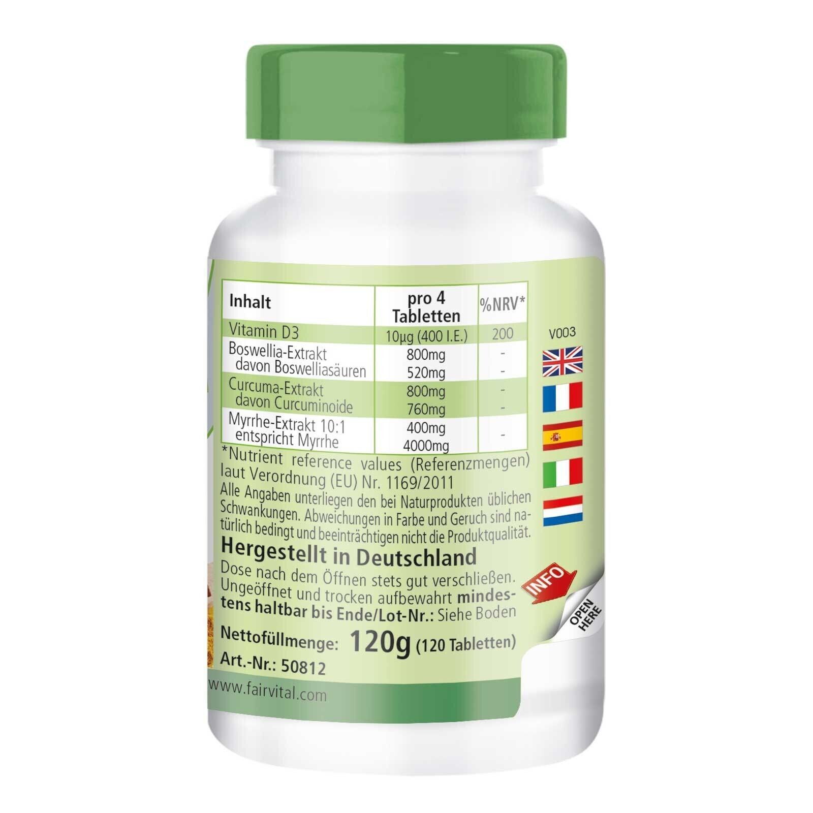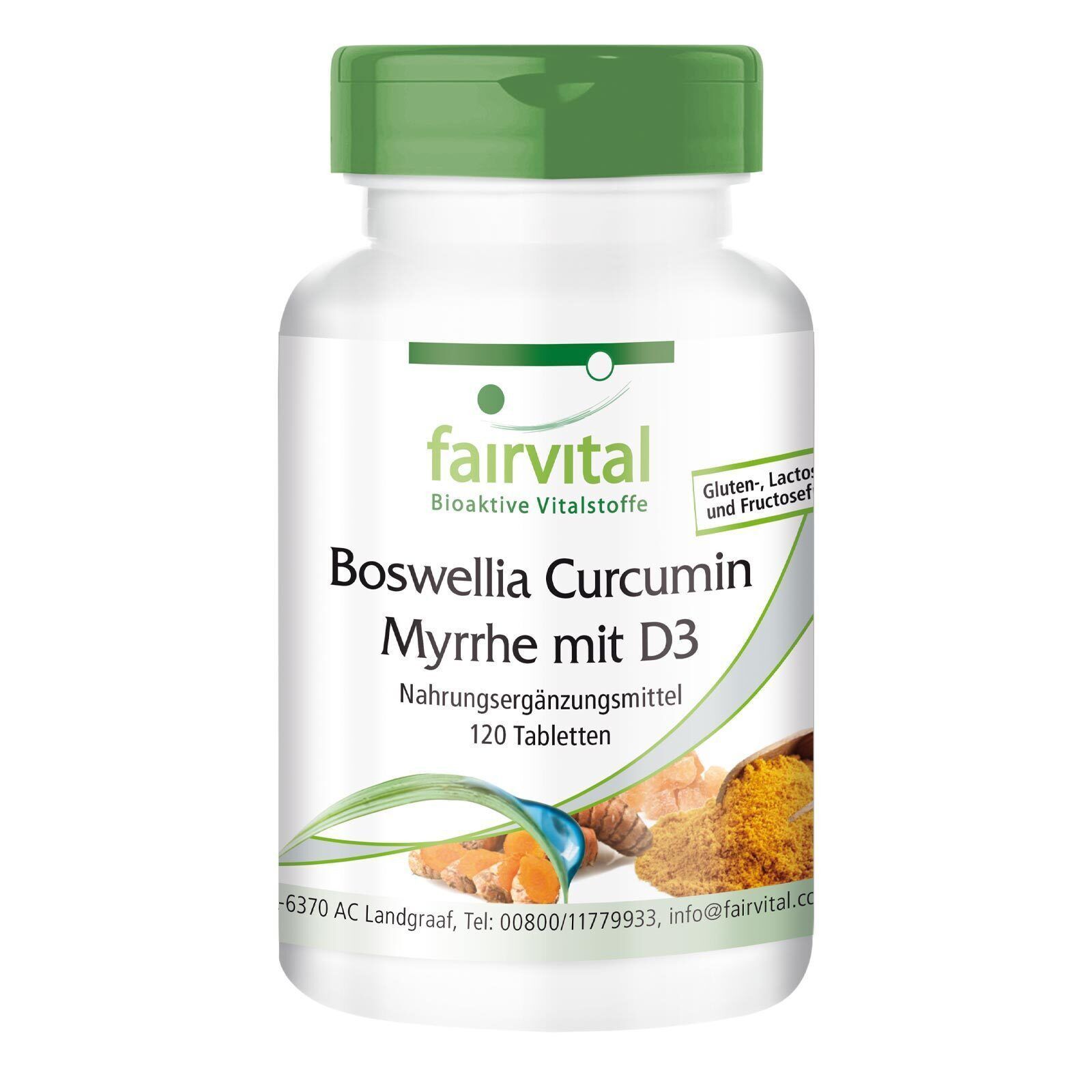 fairvital Boswellia Curcumin Myrrhe mit D3 - 120 Tabletten, Pflanzenextrakte - fairvital