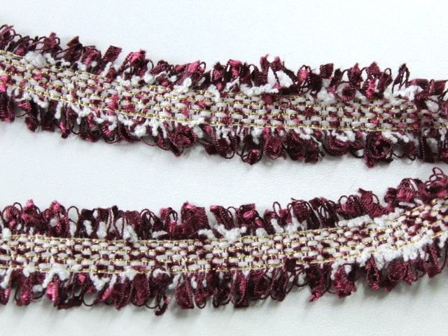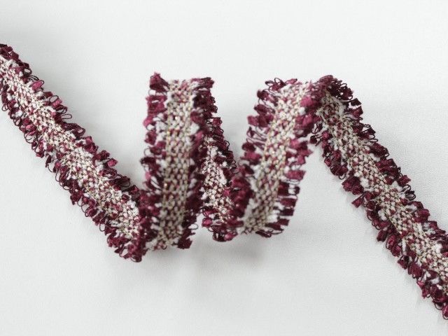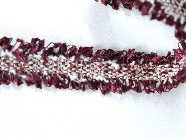 Bouclé Borte, Fransen, gewebt, bordeaux , creme, gold