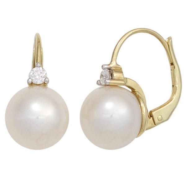 JOBO Boutons 585 Gold Gelbgold 2 Süßwasser Perlen 2 Diamanten Ohrringe