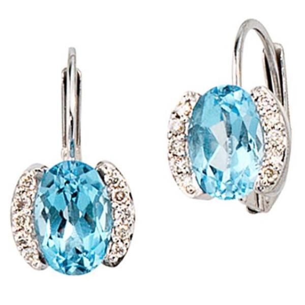 JOBO Boutons 585 Gold Weißgold 20 Diamanten 2 Blautopase blau Ohrringe