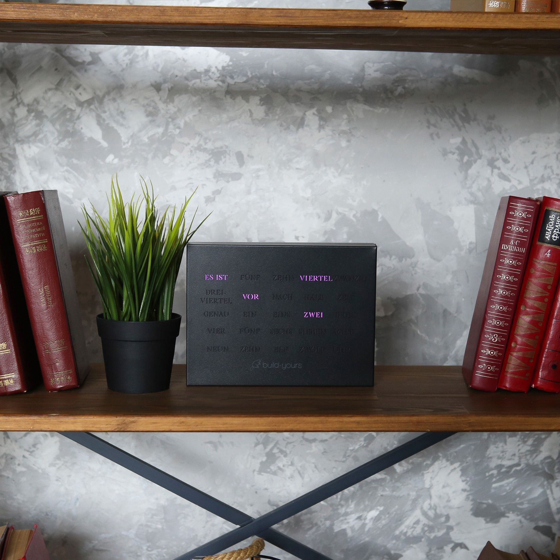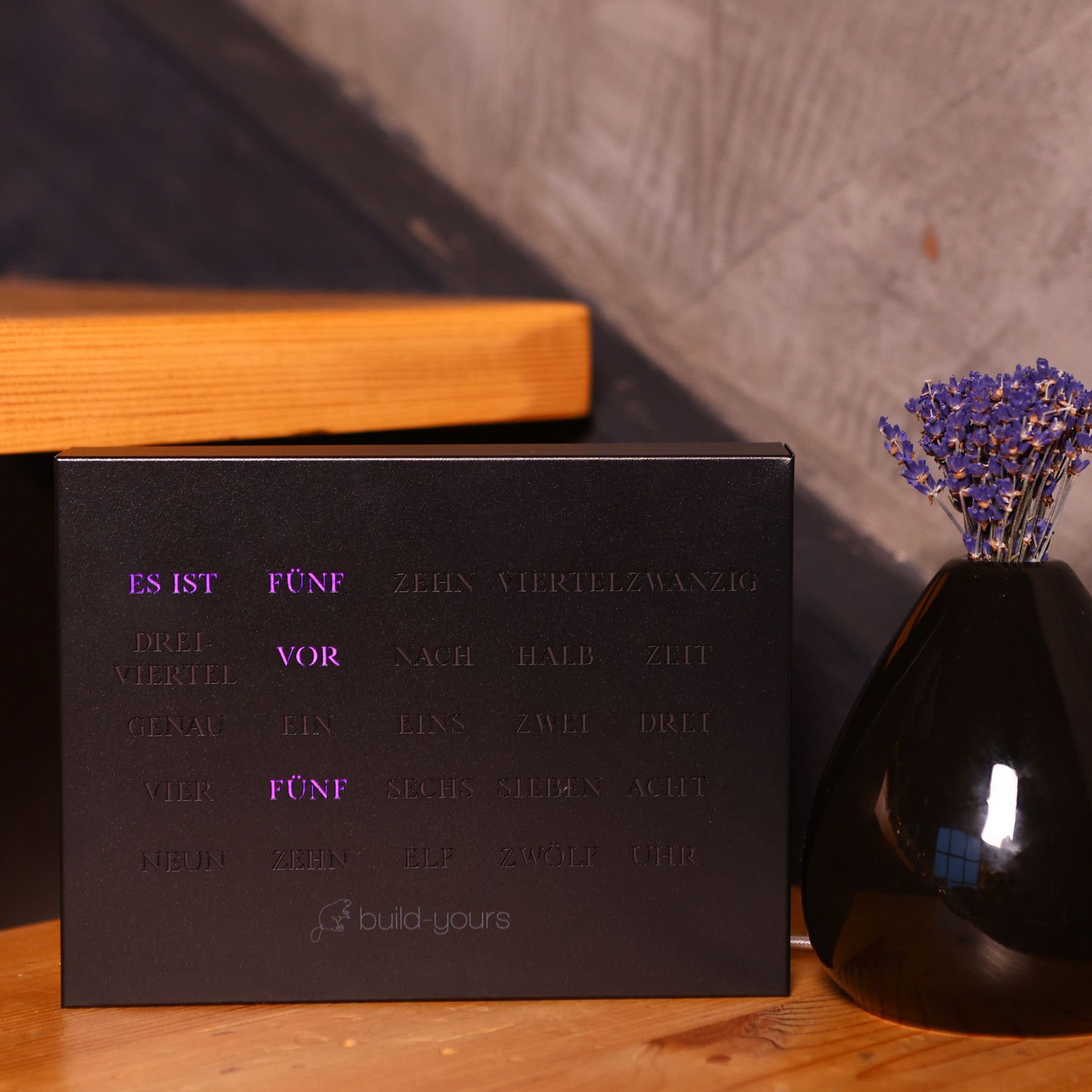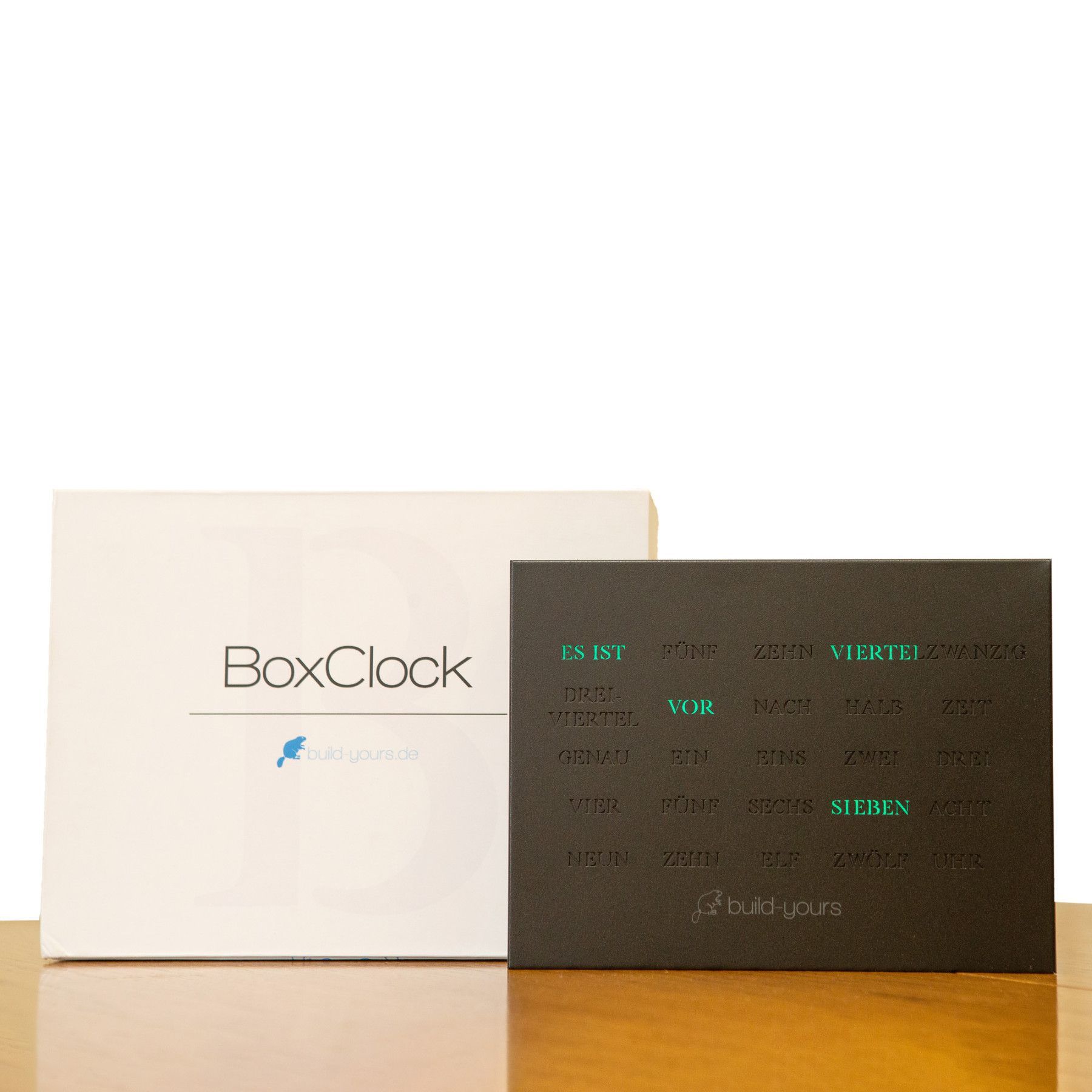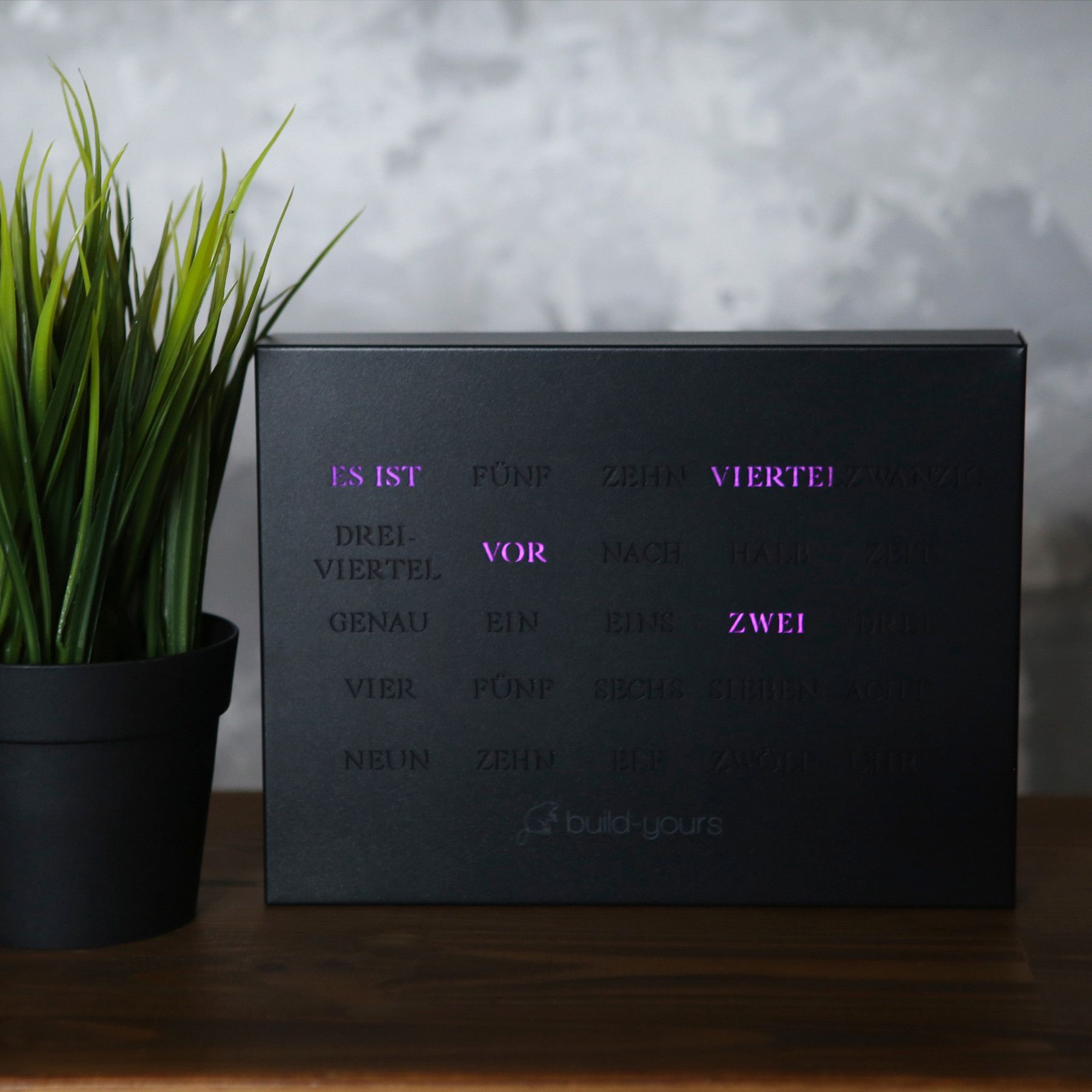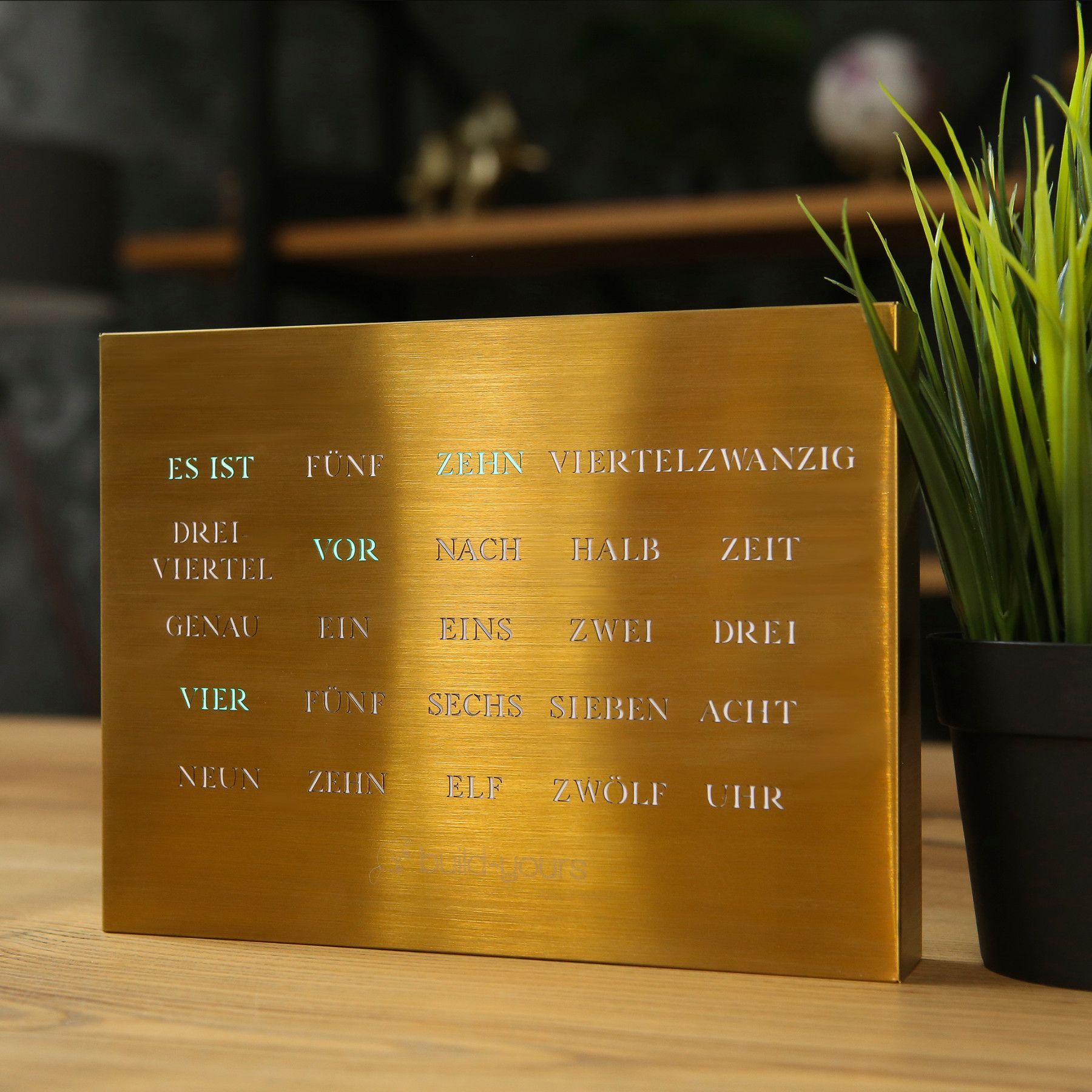 BoxClock Edelstahl - Die Wortuhr für den Schreibtisch - LED Tischuhr - Standuhr