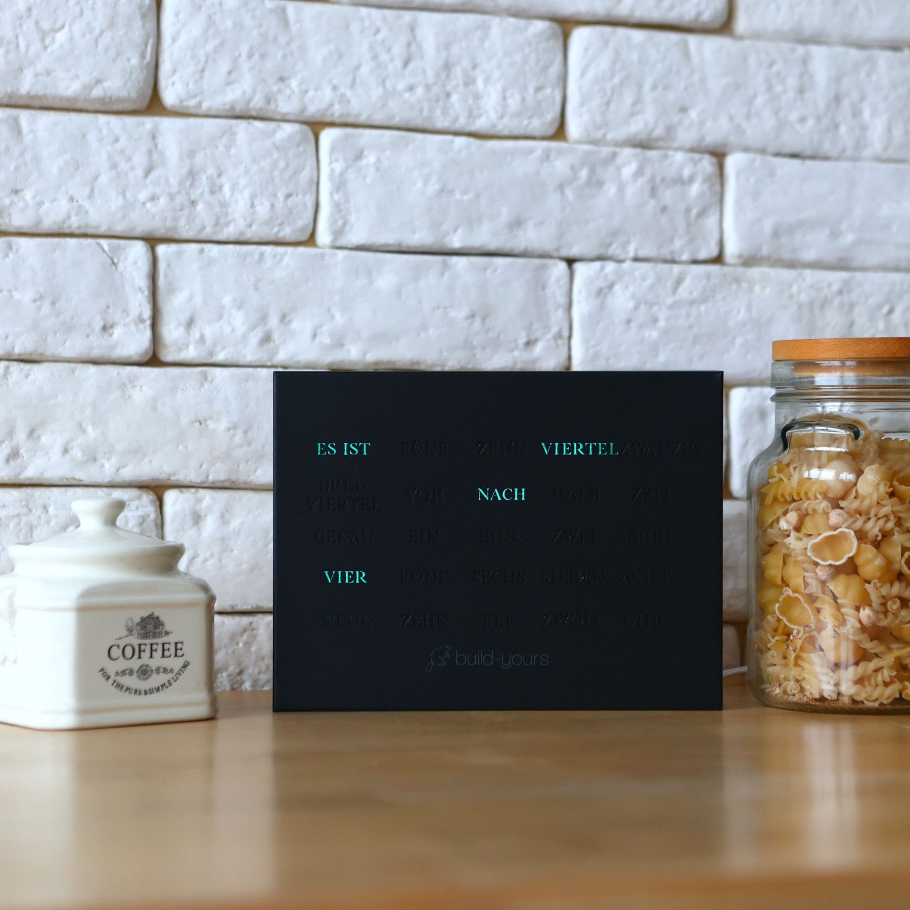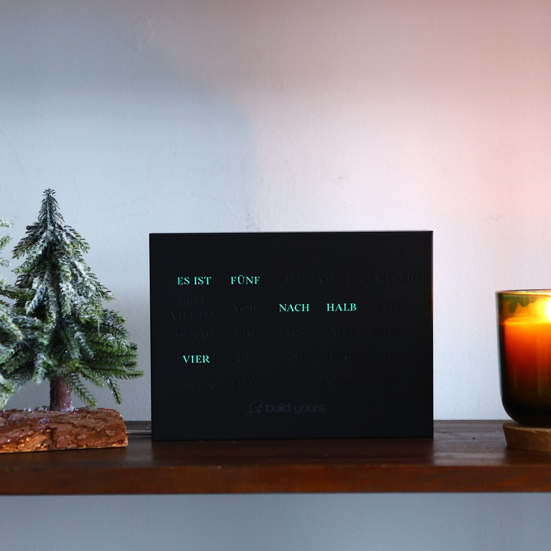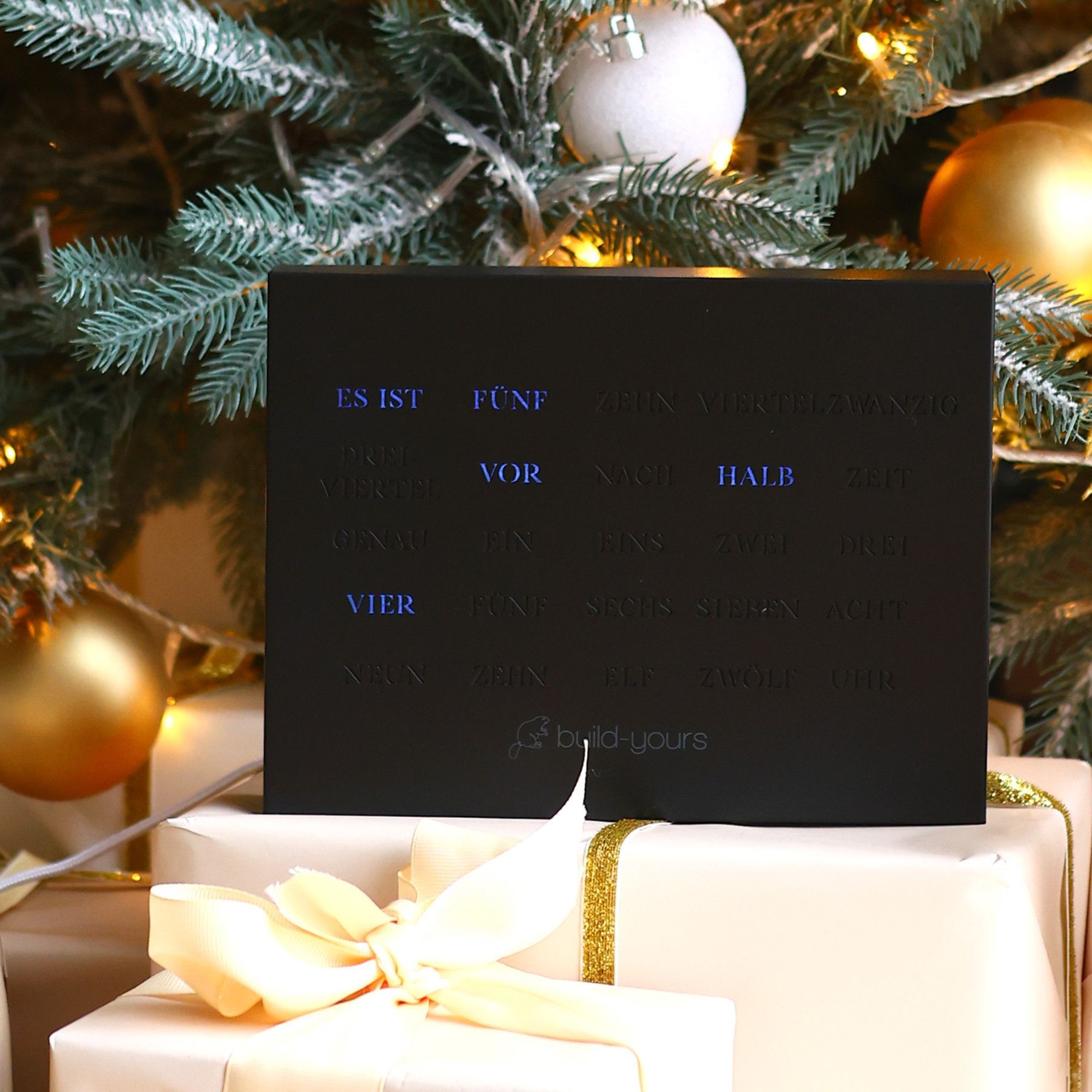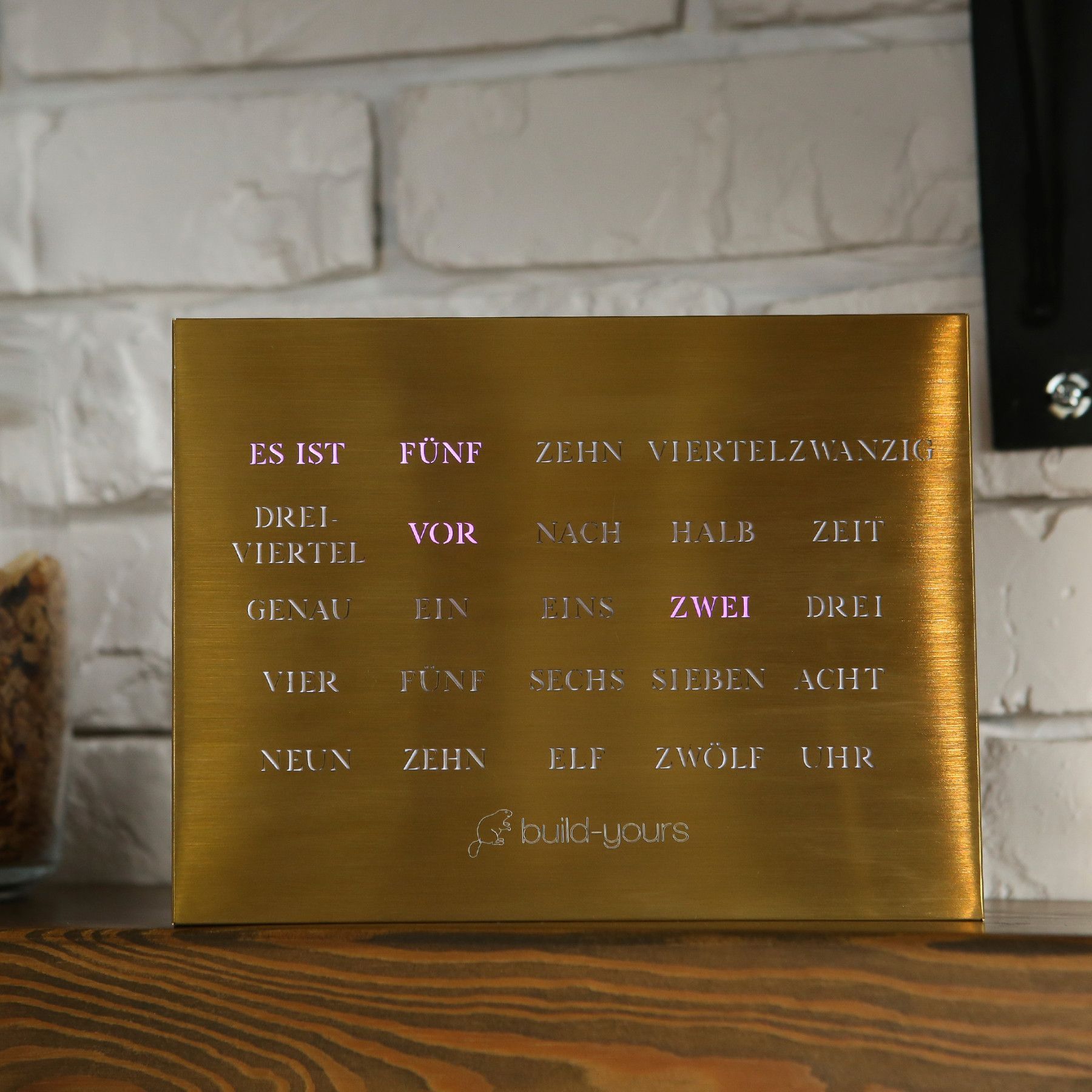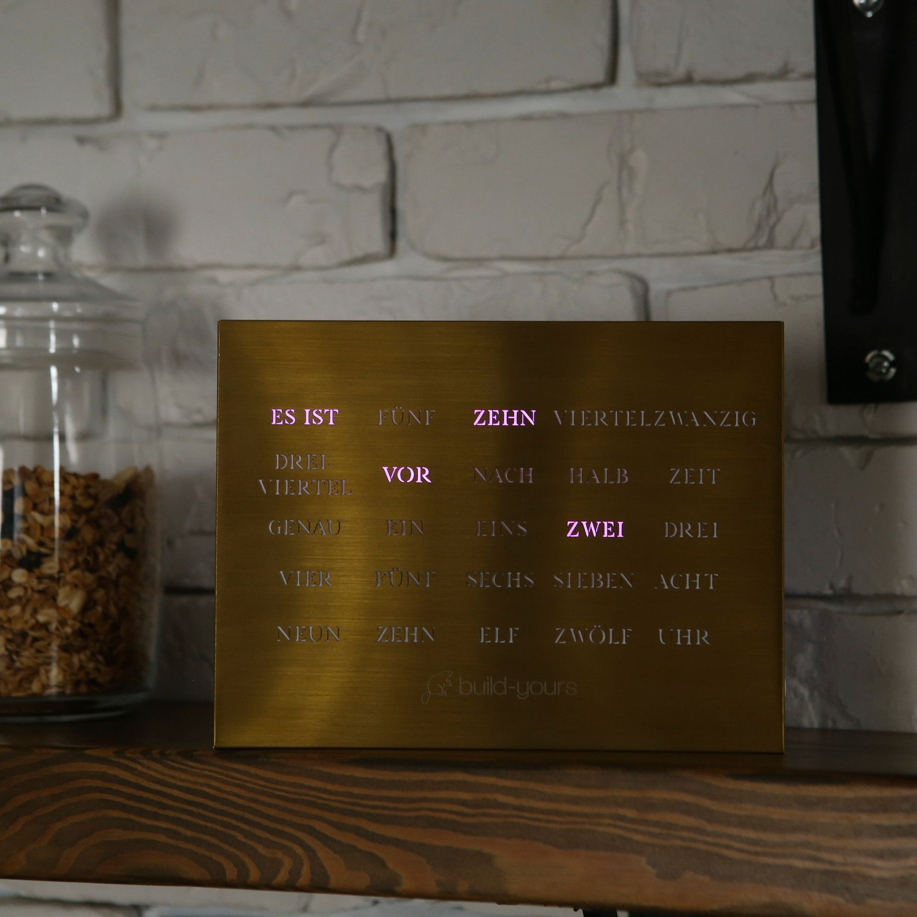 BoxClock Edelstahl - Die Wortuhr für den Schreibtisch - LED Tischuhr - Standuhr