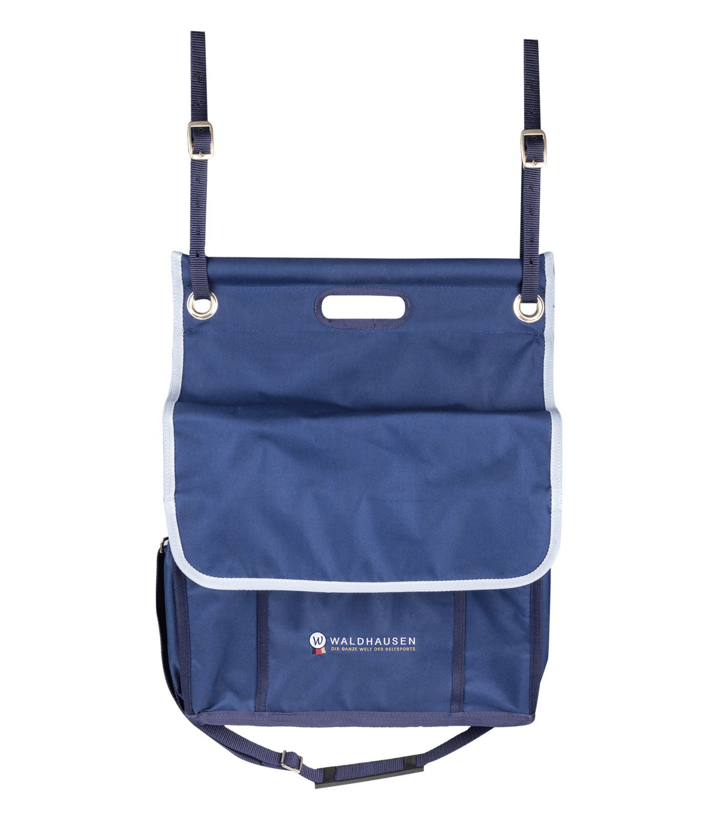 Kleine Boxentasche von Waldhausen Diese Boxentasche ist ein praktischer Ordnungshelfer vor der Box und bietet Platz für z.B.: Beinschutz, Putzzeug, Halfter, etc. Die Tasche ist einfach mit zwei Gurten an der Box zu befestigen. Zusätzlicher Tragegurt erleichtert den Transport der Tasche im Stall oder