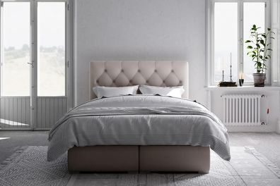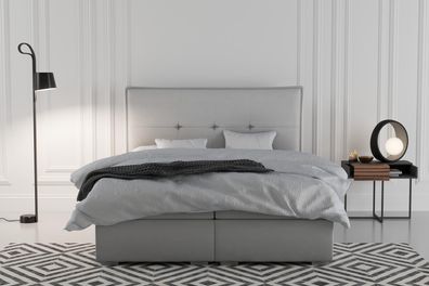 • Bett Boxspring Betten Luxus Doppelbett inkls. Matratze mit Caro Muster Grau