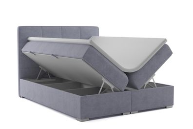 • Boxspring Bett Hotel Doppel Textil Grau Luxus Betten Polster Bettkasten Funktion