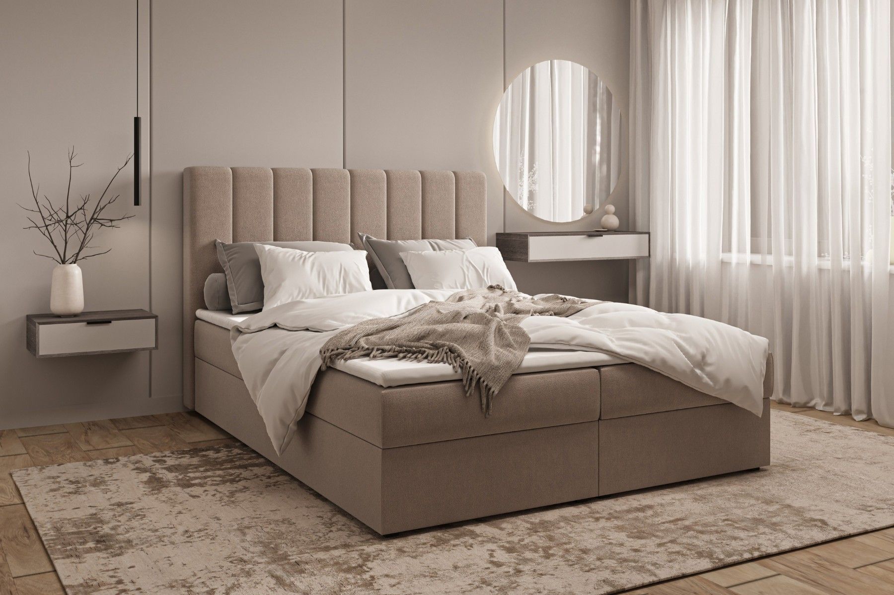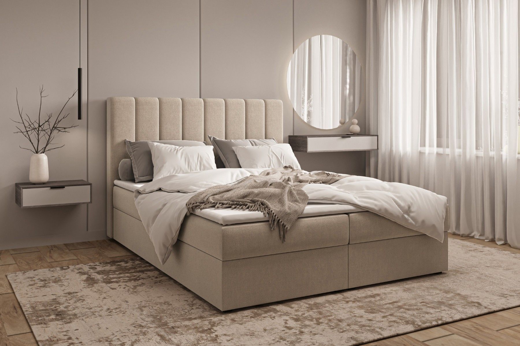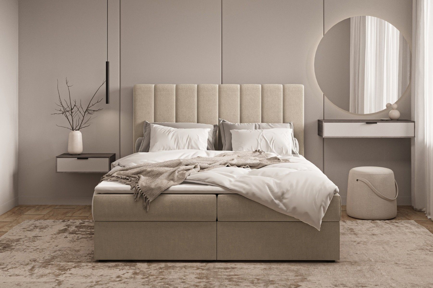 Boxspringbett 01 Beige 140x200 cm Kontinentalbett, Doppelbett, Bett mit bettkasten