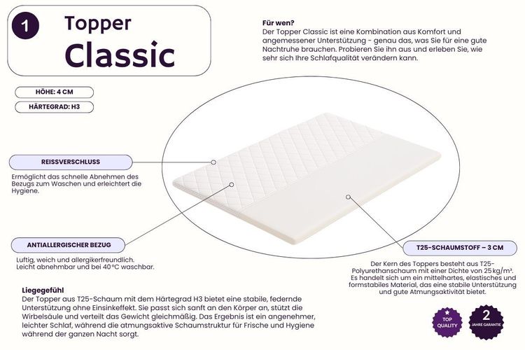ohne Topper, mit Classic Topper und mit Visco Topper
