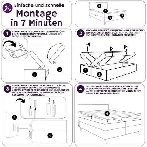 Boxspringbett Apollo 120/140/160/180x200 cm mit Bettkasten, Matratze und Topper