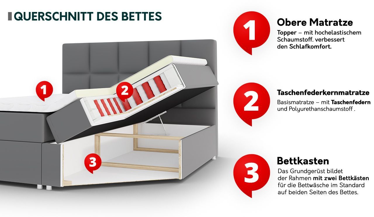 Boxspringbett Bedran Bett Doppelbett Bettgestell Schlafzimmer Kollektion Bettkasten