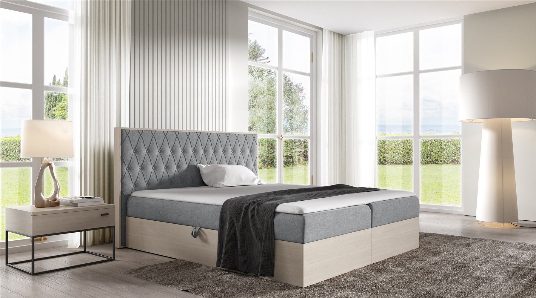 Boxspringbett Bett BROMIA 140x200cm Nordic Teak Stoff Grau inkl. Bettkasten