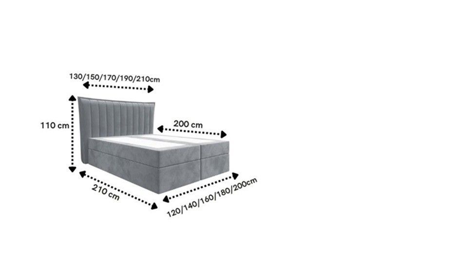 Boxspringbett Bett Doppelbett LUNA mit Bonell-Matratze + 2 Bettkästen , H3