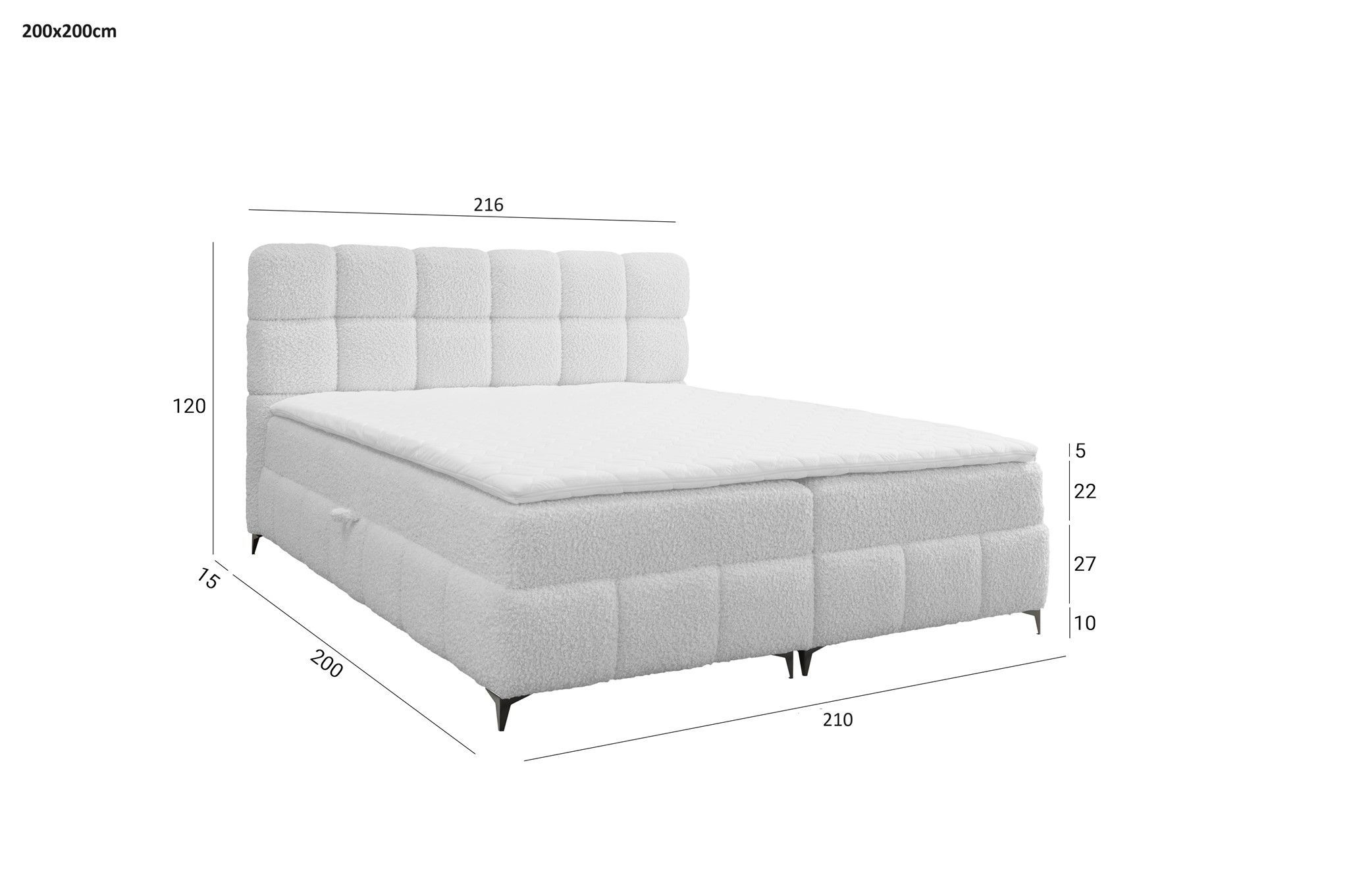 Boxspringbett Bett Schlafzimmerbett SOPHIE 200x200cm Stoff Rolf Beige