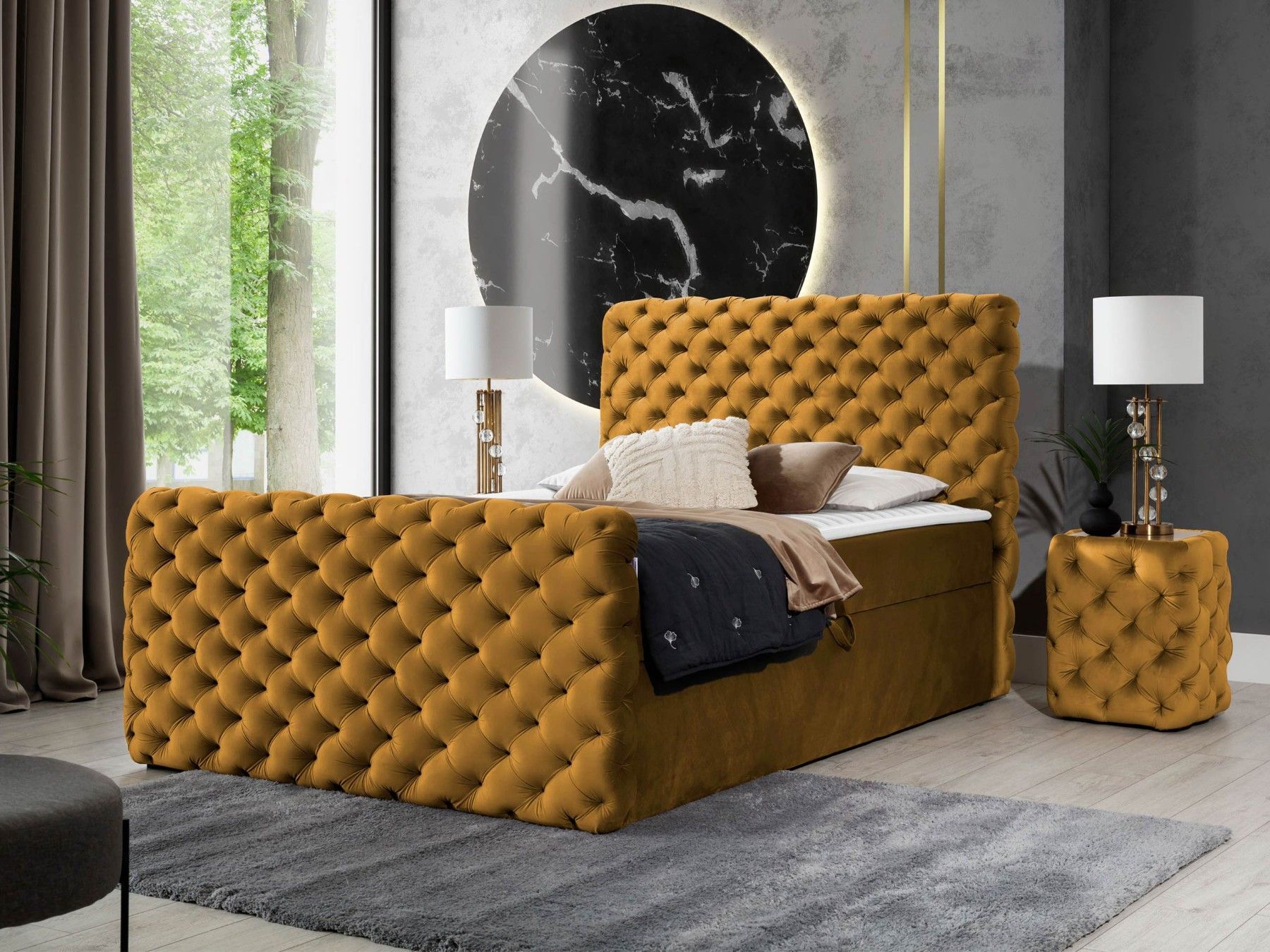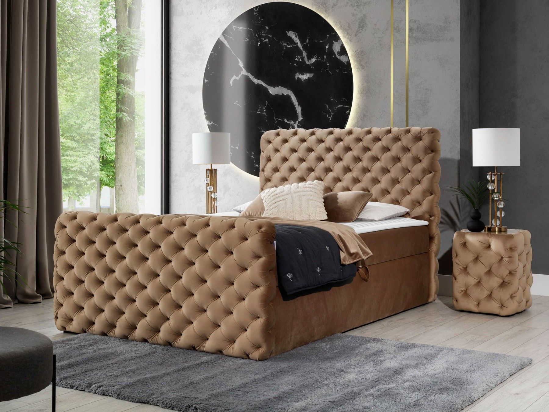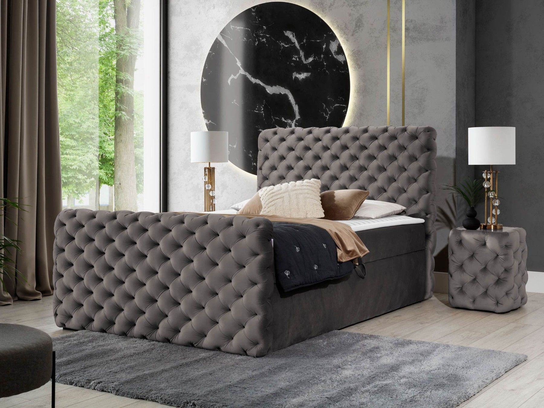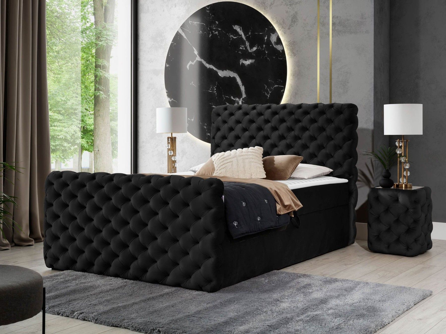 Boxspringbett Chesterfield Lux mit zwei Bettkästen Topper Doppelbett Einzelbett