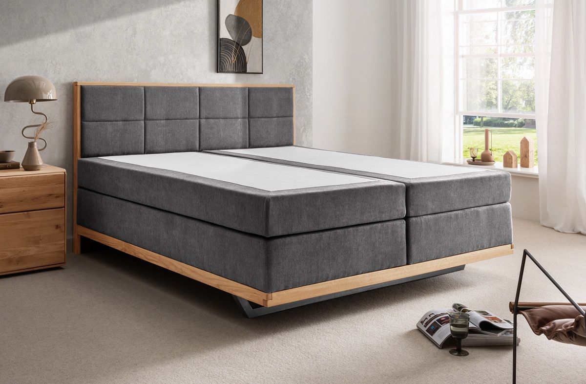 Boxspringbett 'David' 180x200cm Eiche Stoff anthrazit