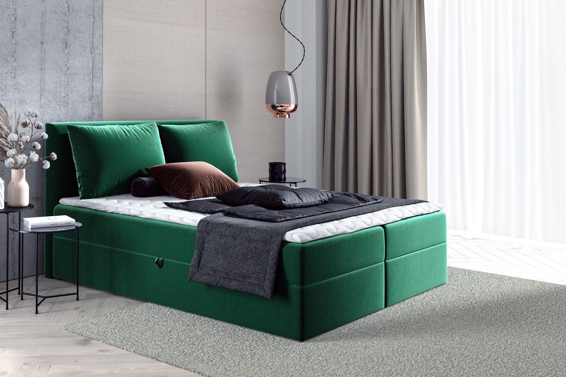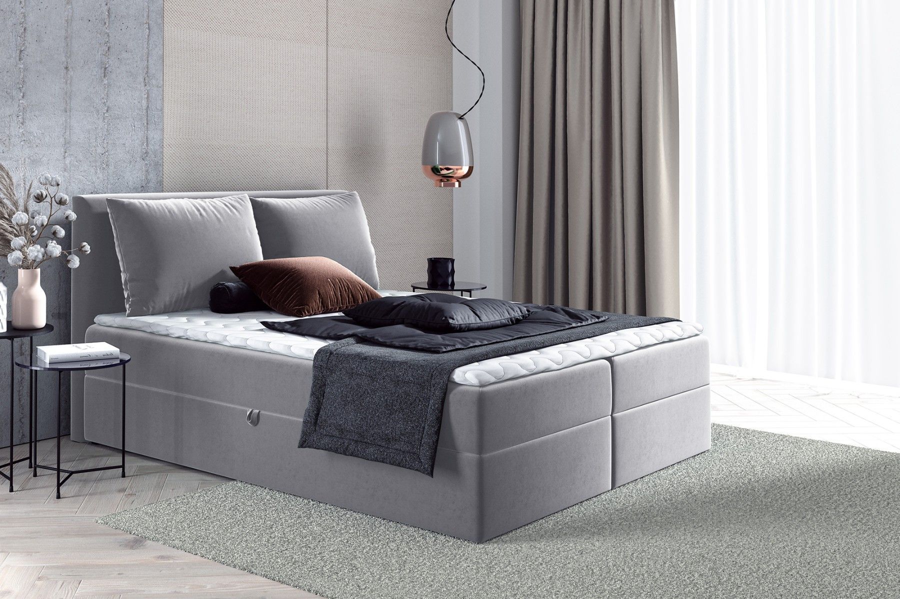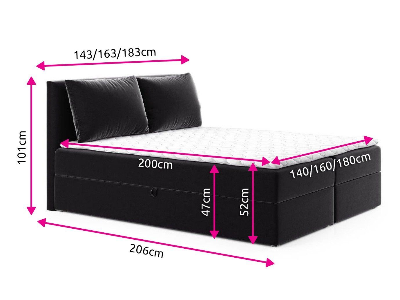 Wir haben ein 1.80 x 2.00m Boxspringbett bestellt, mittlerweile ein gutes halbes Jahr und wir sind sehr zufrieden. Der schwarze Samtbezug sieht elegant und schick aus, auch die 2 dazugehörigen Kissen. Die Bettkästen sind riesig und einfach zu bedienen. Verarbeitung super, netter Lieferant. Preis - Leistung top. Würde hier immer wieder bestellen :-)