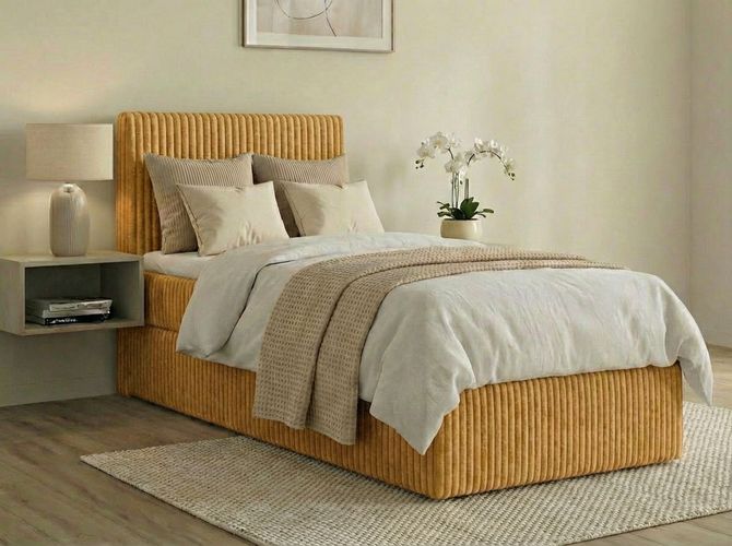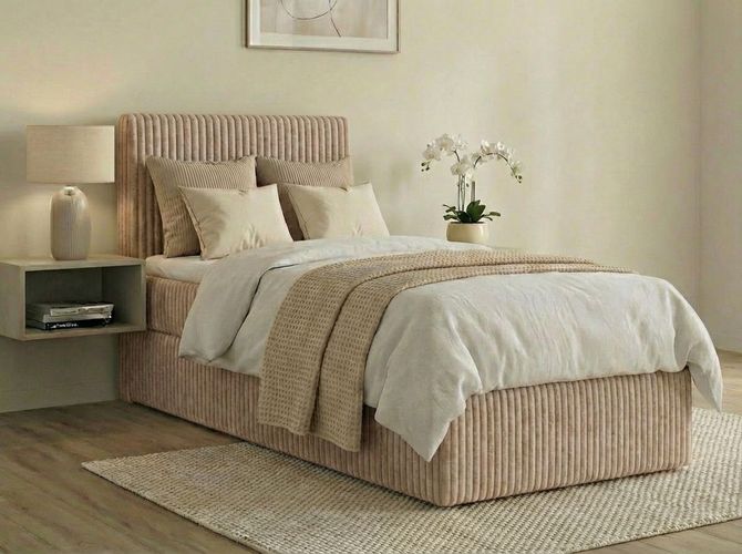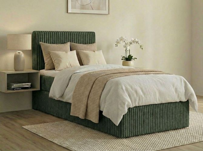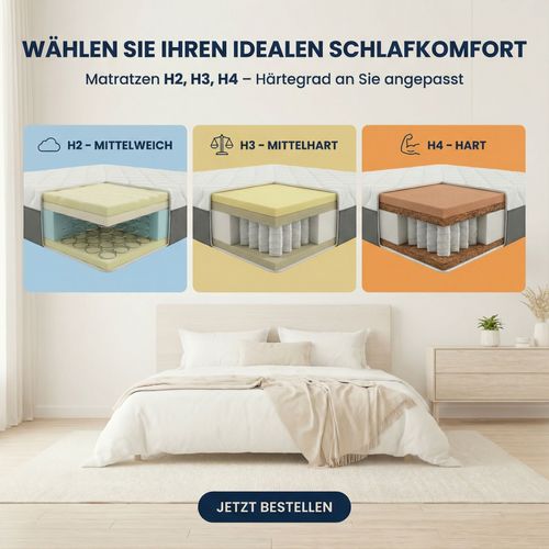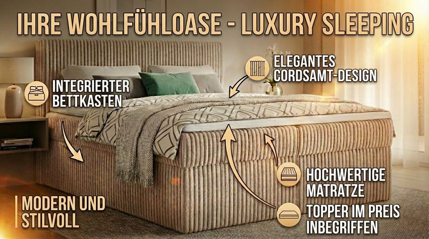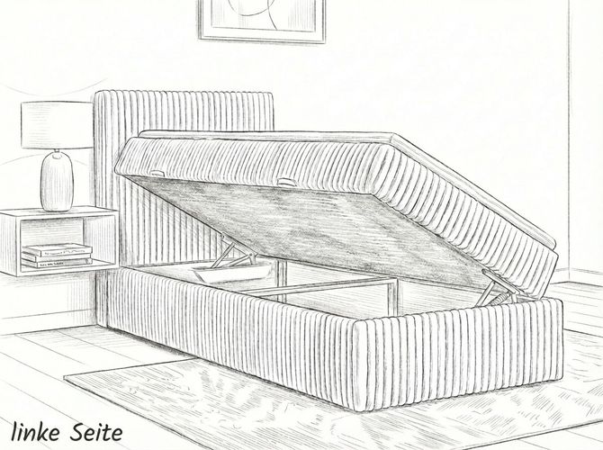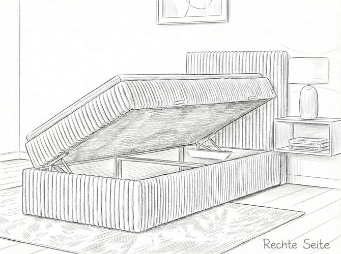 Mit gepolstertem Kopfteil, Bettkasten und wählbarer Liegerichtung