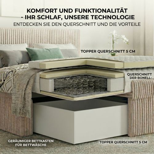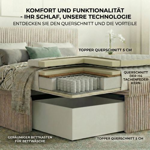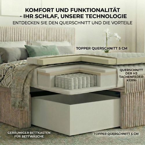 Boxspringbett Einzelbett RALFI mit Bettkasten | 80/90/100x200 | H2/H3/H4 | Visco oder
