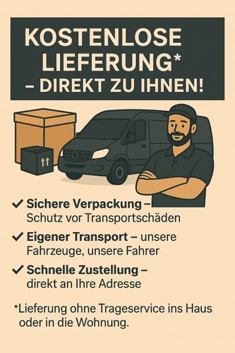 Zustellung:  Zustellung nach Vereinbarung. Versandfertig in 3 bis 9 Tagen. Zustellung nach Vereinbarung. Versandfertig in 3 bis 9 Tagen.