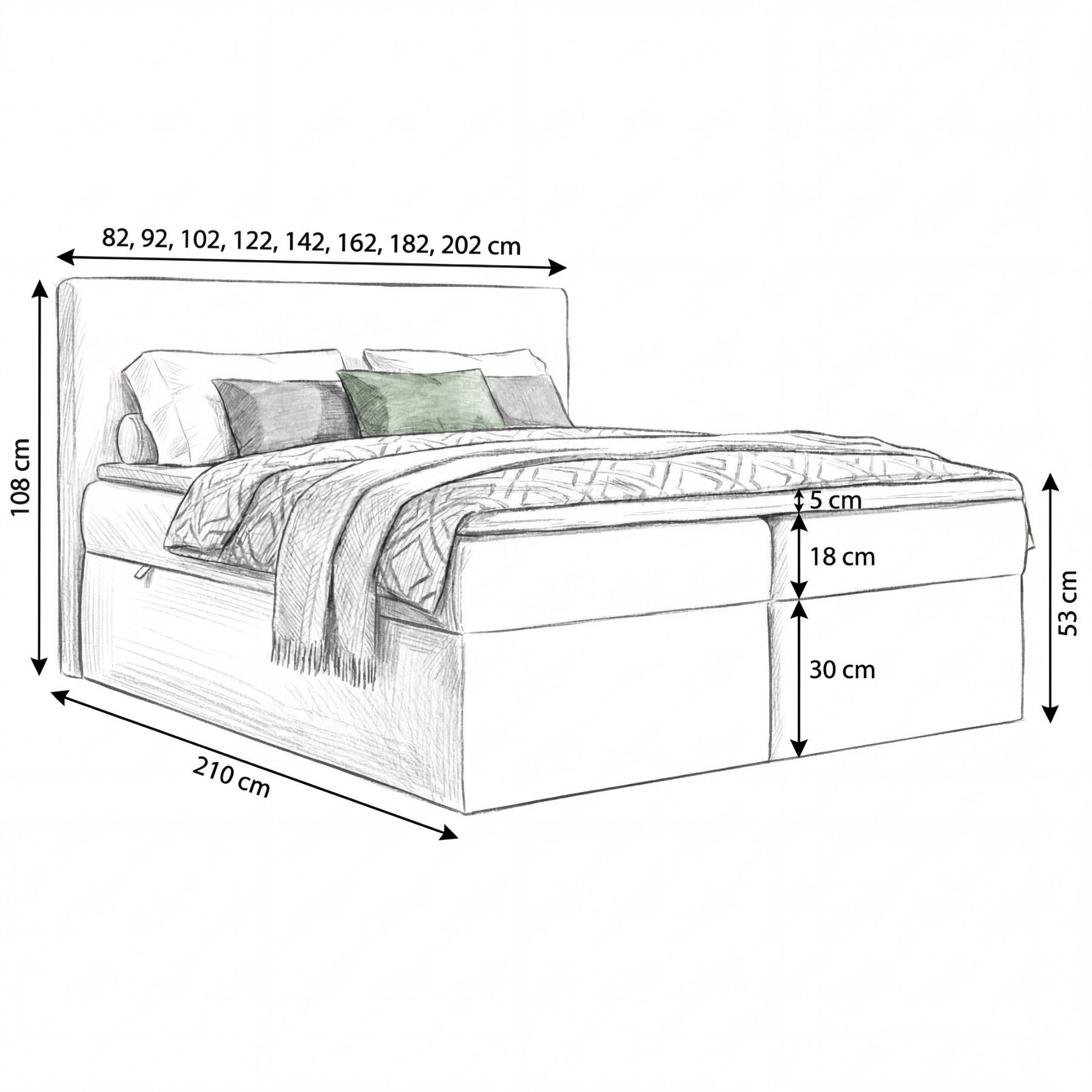 Doppelbett in verschiedenen Größen: 120x200, 140x200, 160x200, 180x200, 200x200