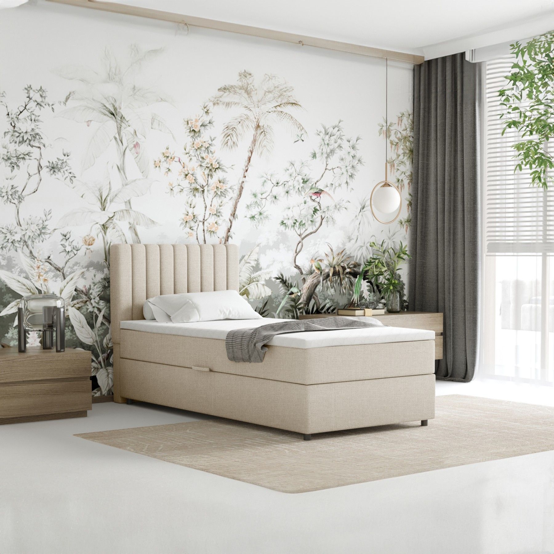 Boxspringbett Everest 90x200 mit Bettkasten und Topper, Einzelbett