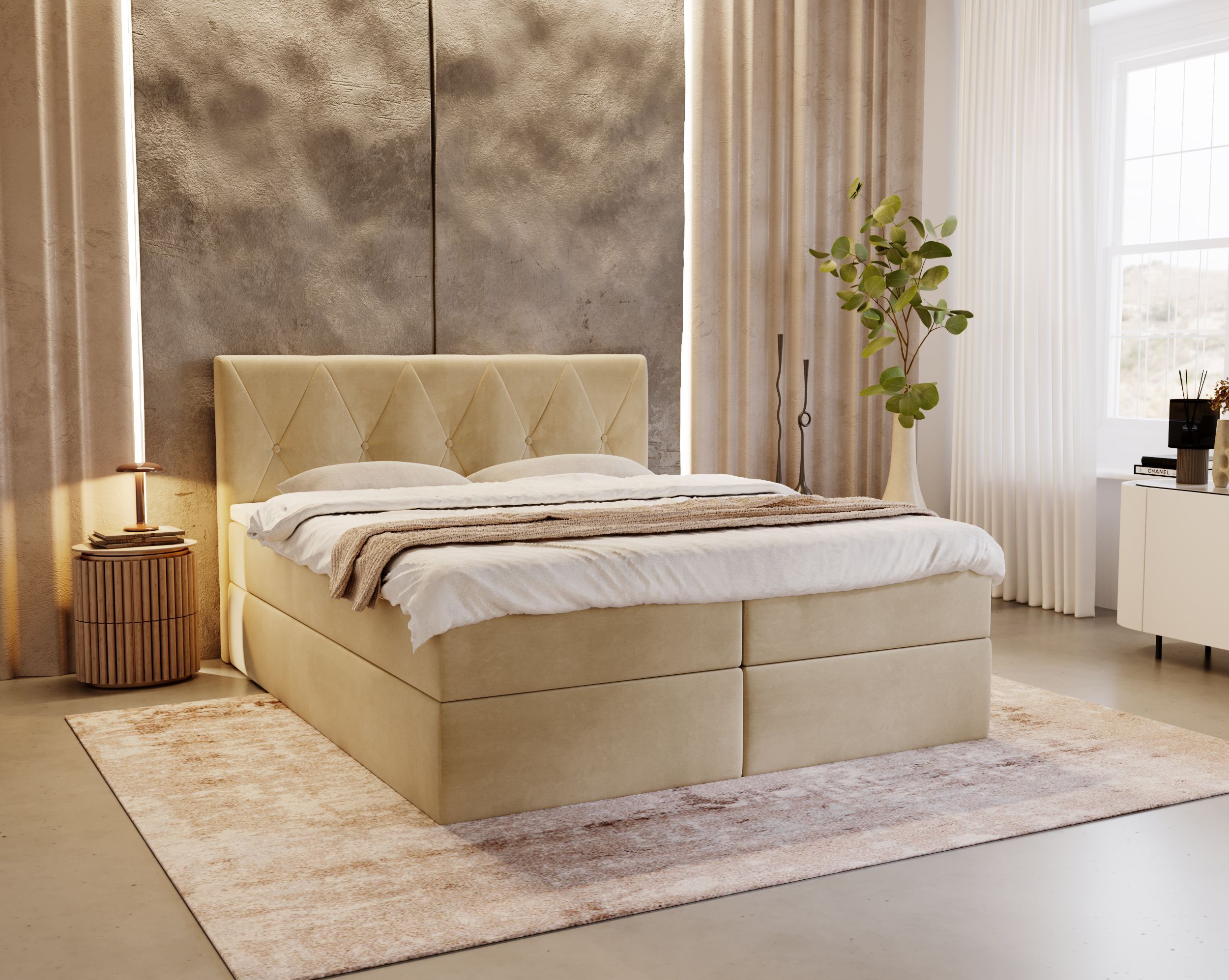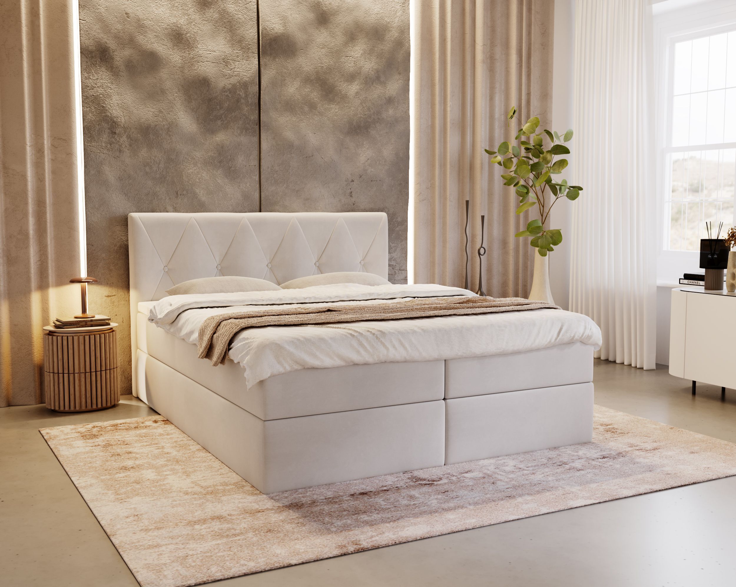 Boxspringbett FLAVIO mit 2 Bettkästen, Doppelbett mit Bonell-Matratze + Topper Bett