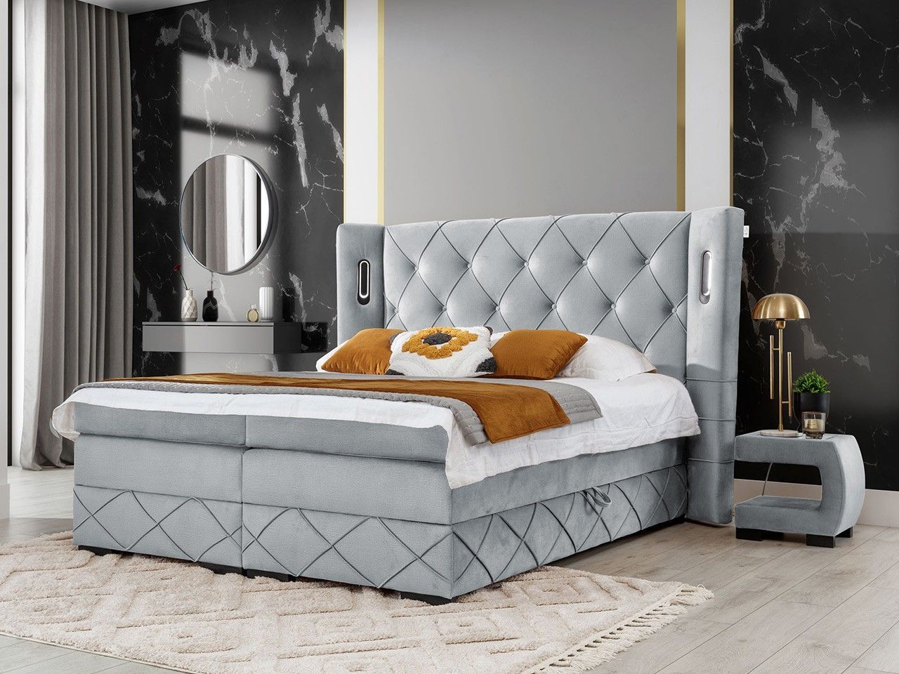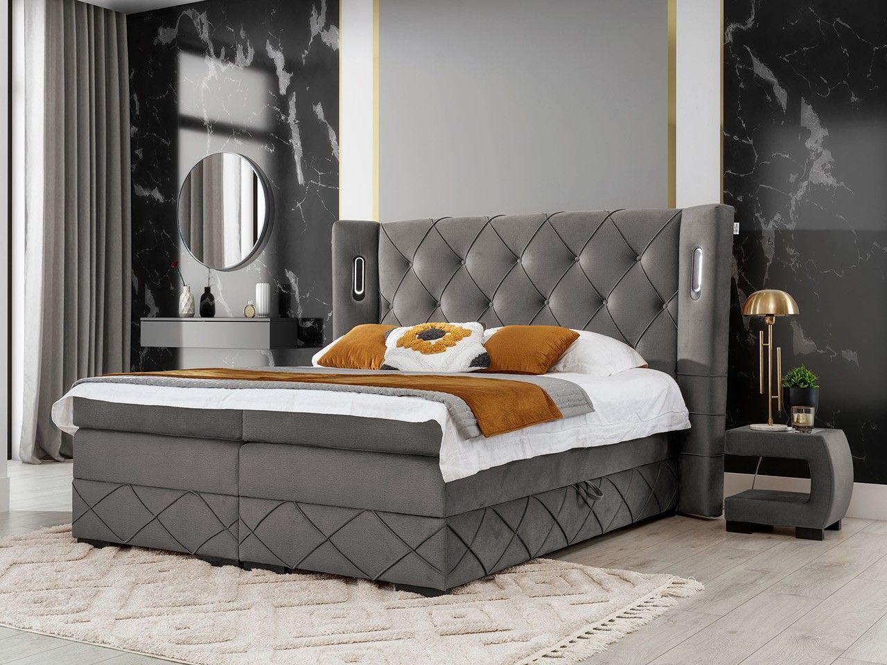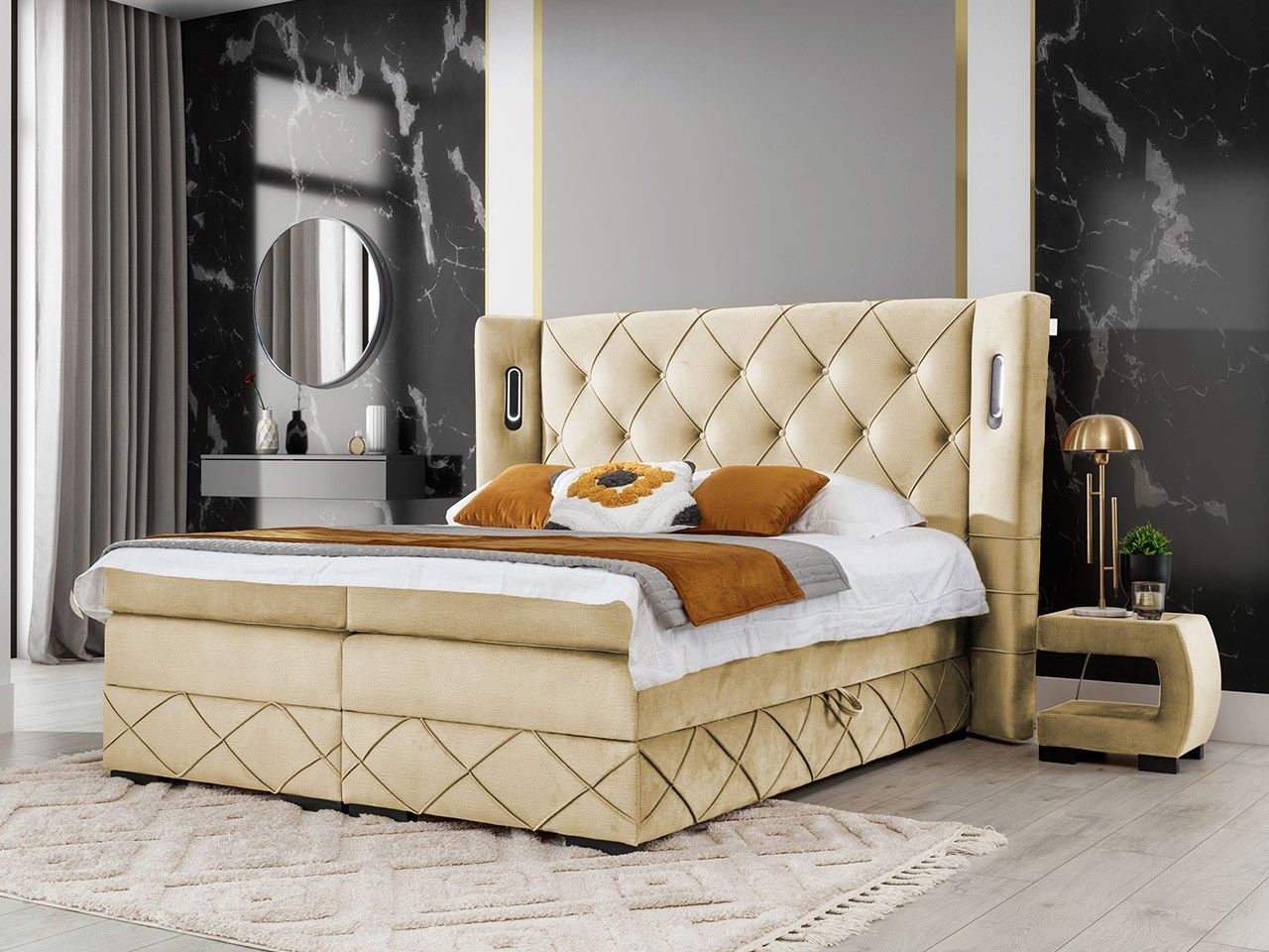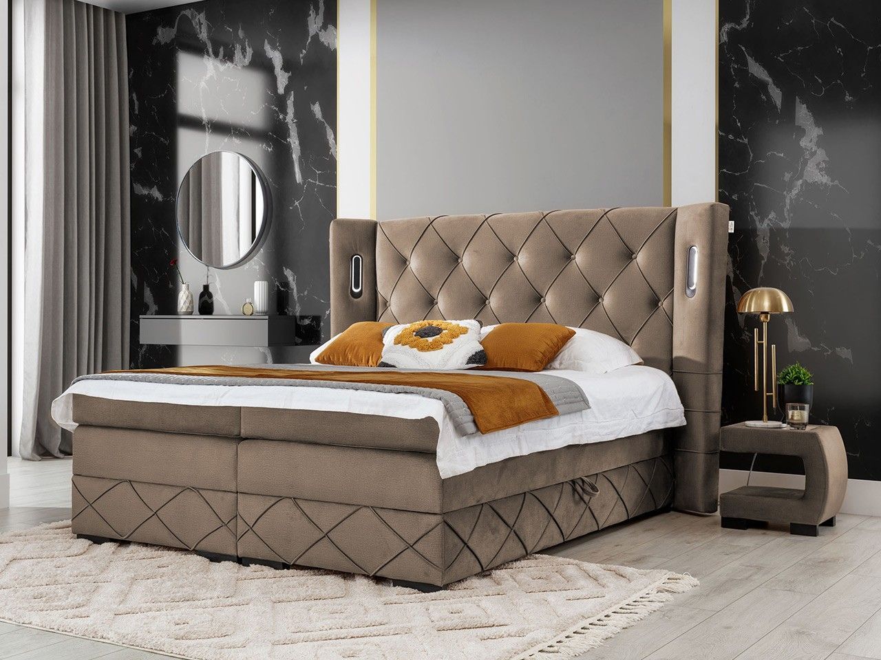 Boxspringbett Focus Lux mit zwei Bettkästen Topper Doppelbett mit Beleuchtung