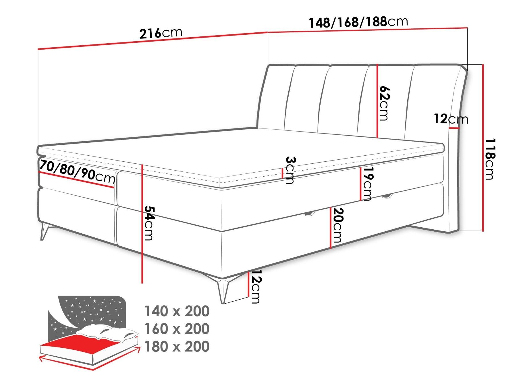 Höhe Kopfteil: