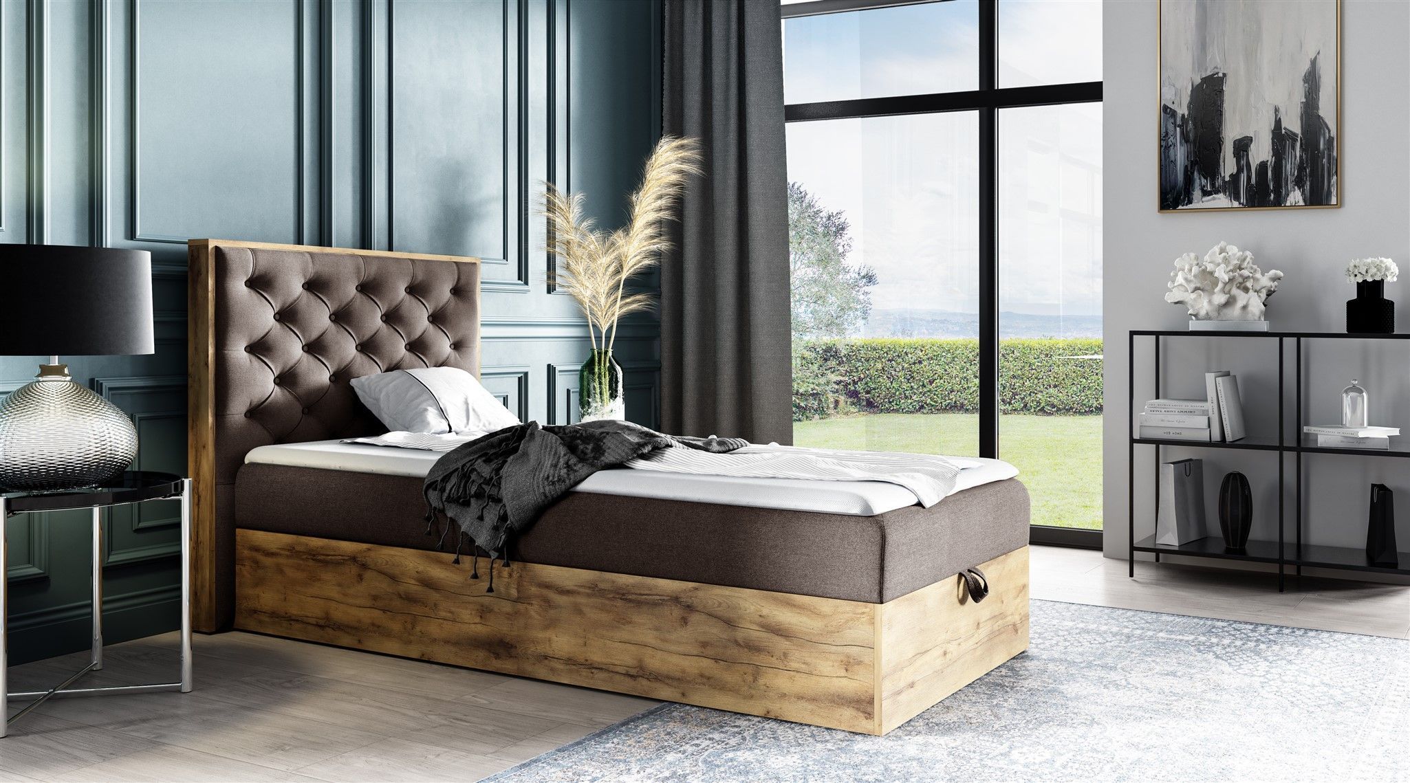 Boxspringbett Gästebett Bett DIONA MINI 80x200cm Stoff Braun inkl. Bettkasten