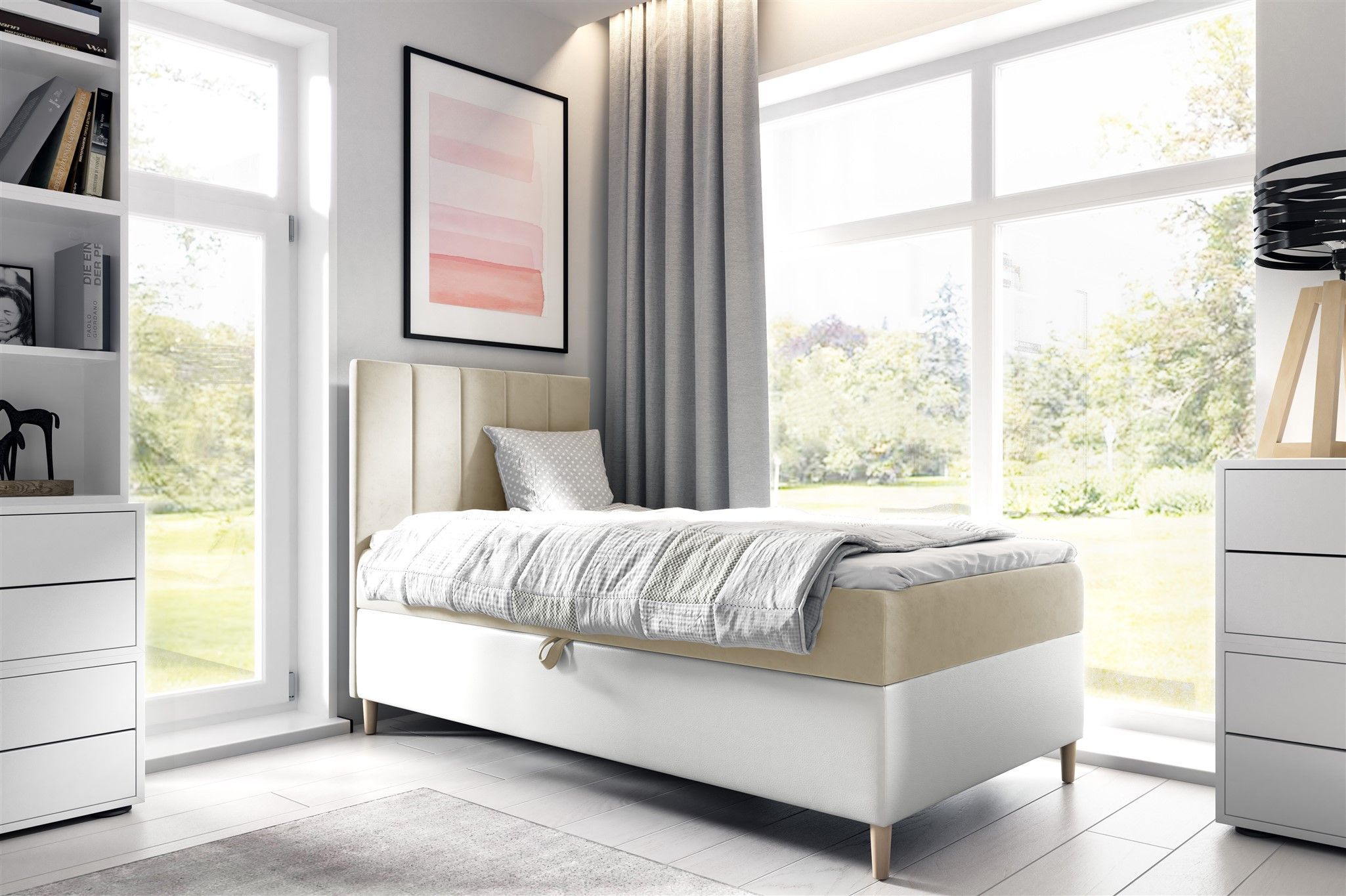 Boxspringbett Gästebett Kinderbett HELVI Nr.1 80x200cm Weiss-Beige