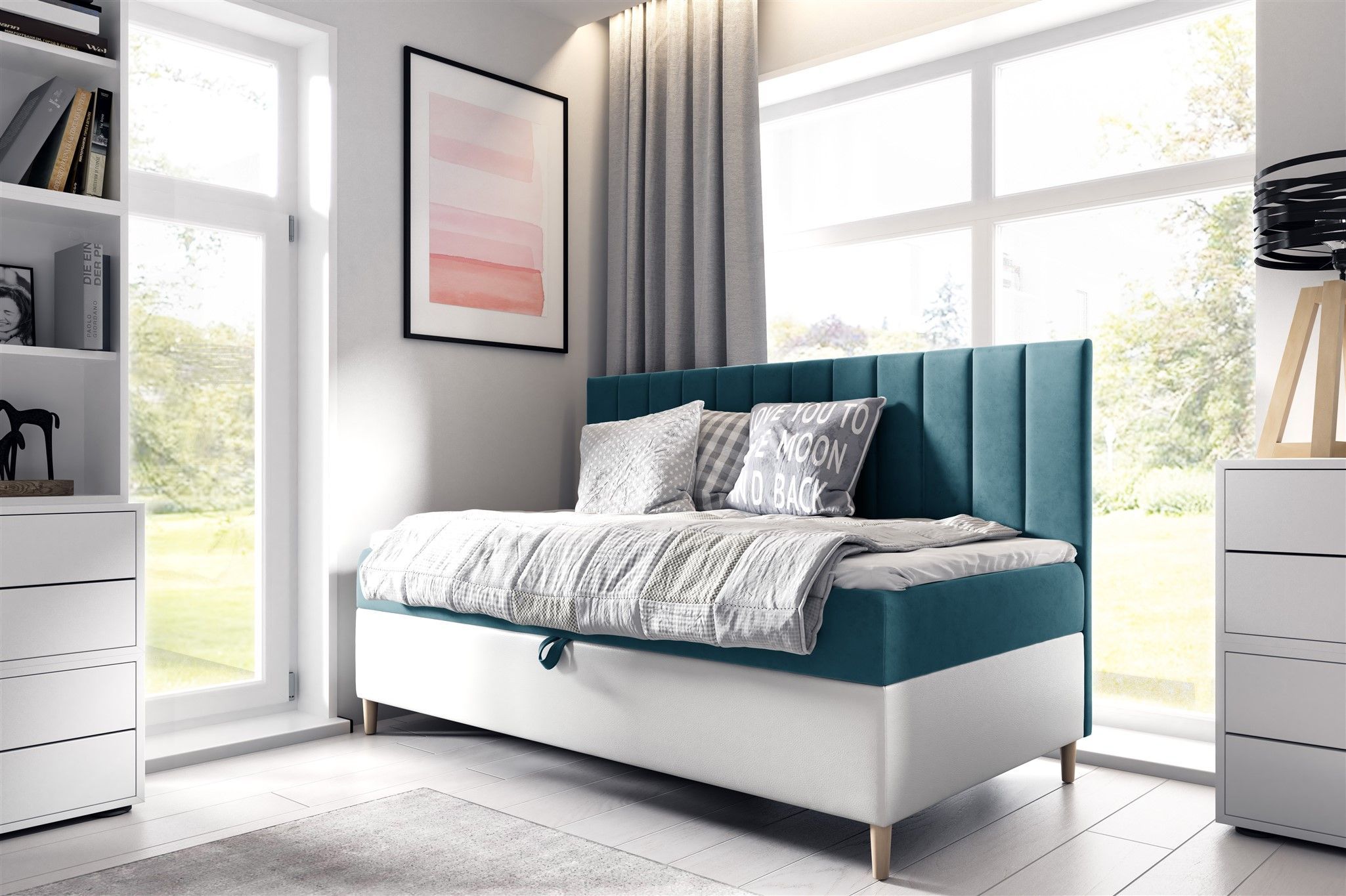 Boxspringbett Gästebett Kinderbett HELVI Nr.2 90x200cm Weiss-Türkis