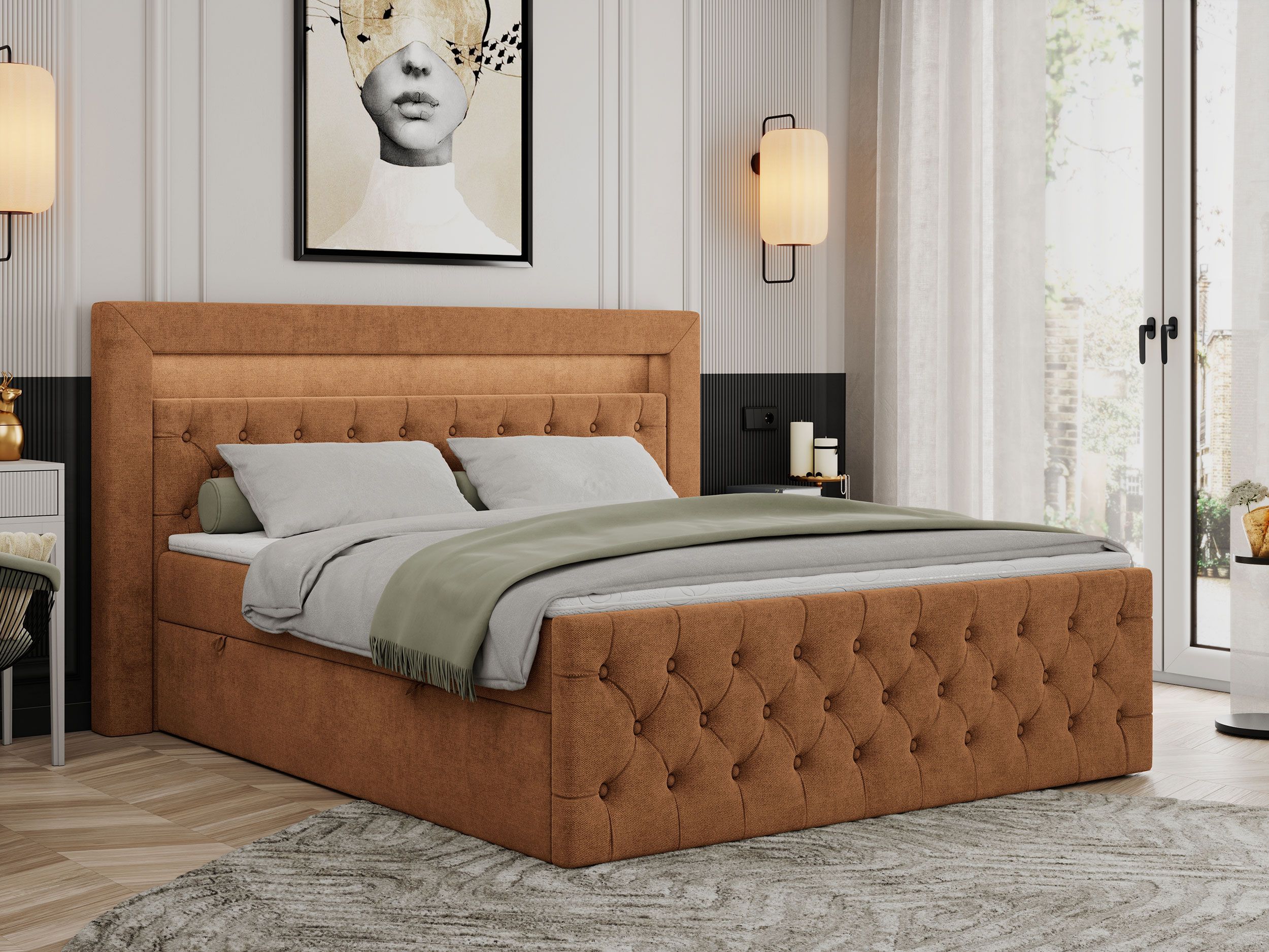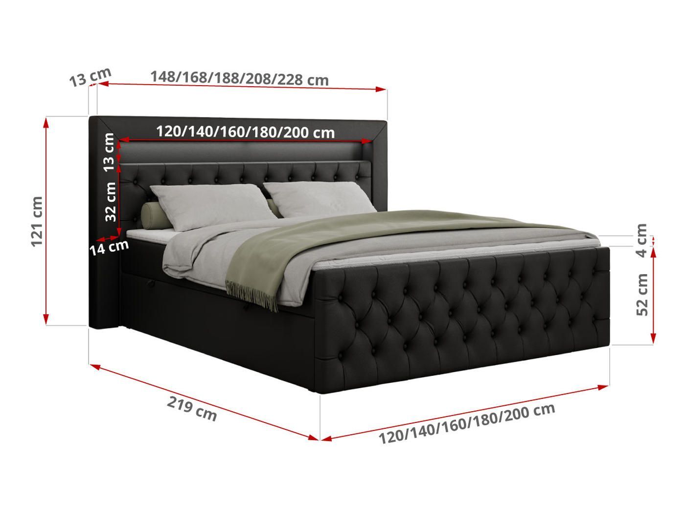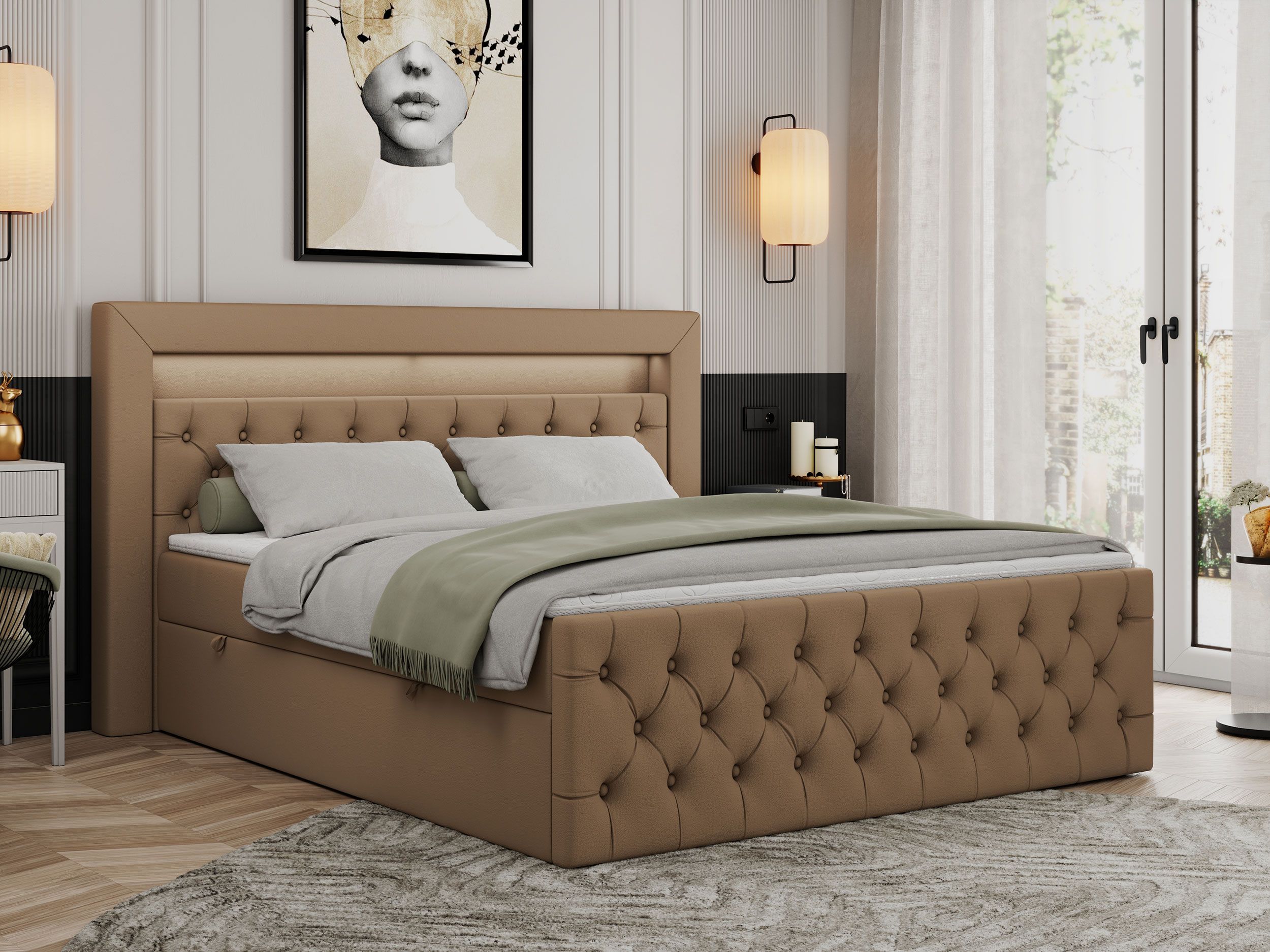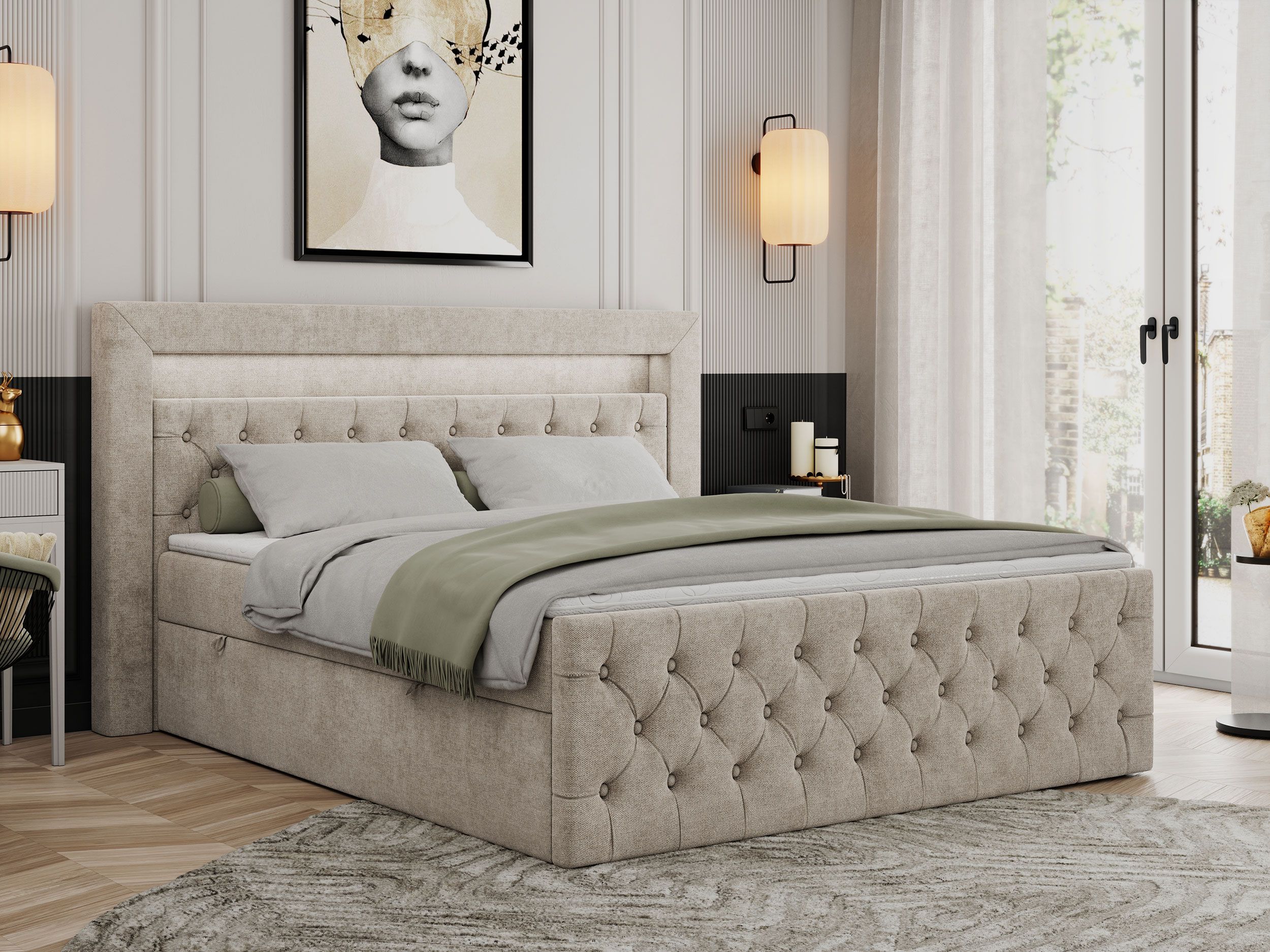 Boxspringbett GOLD 9 mit zwei Bettkästen, Doppelbett mit LED Kopfteil