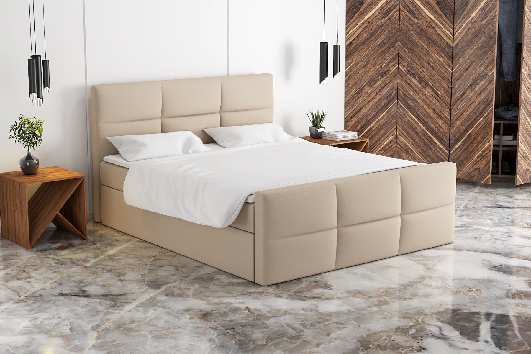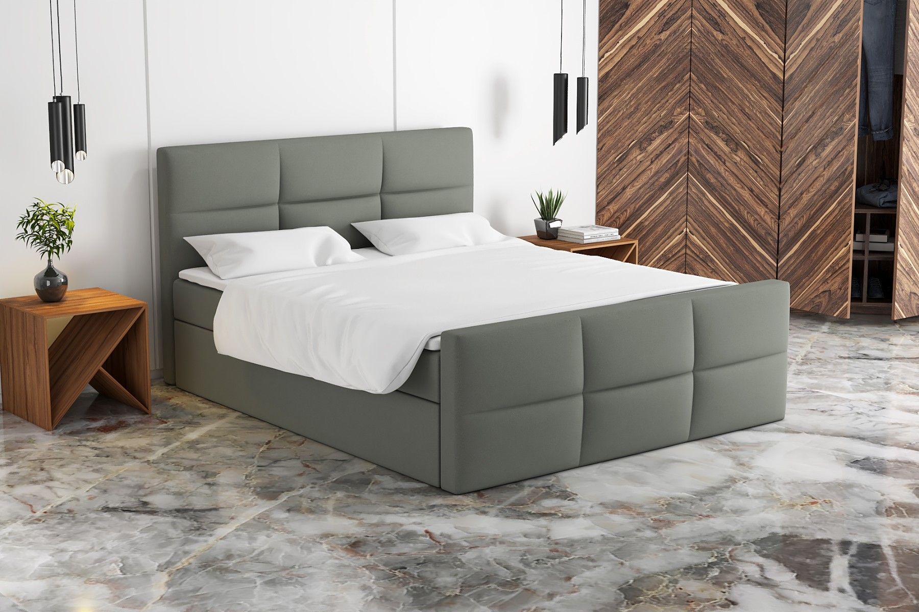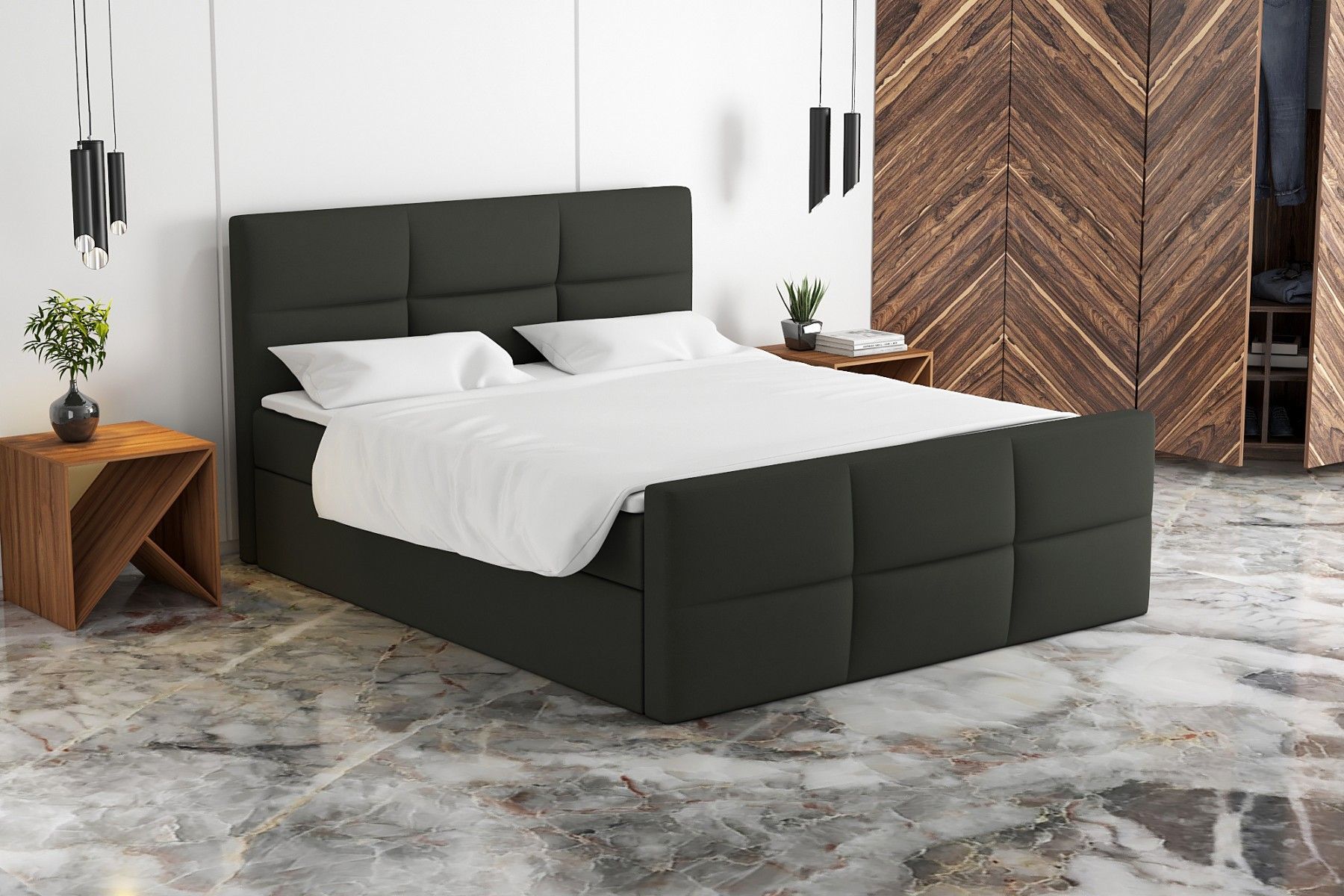 Boxspringbett HAKI mit 2 Bettkästen, Bonell-Matratze, Schlafkomfort